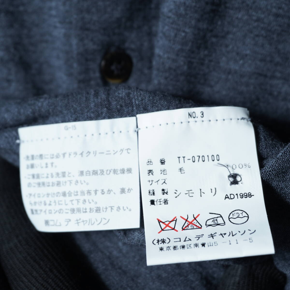 【COMME des GARONS】コムデギャルソン 98年製 極美品 タグ付 WOOL100%クルーネックカーディガン gray