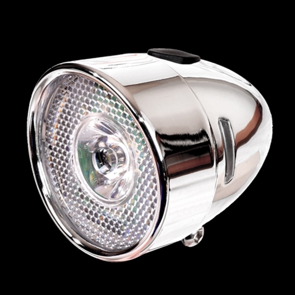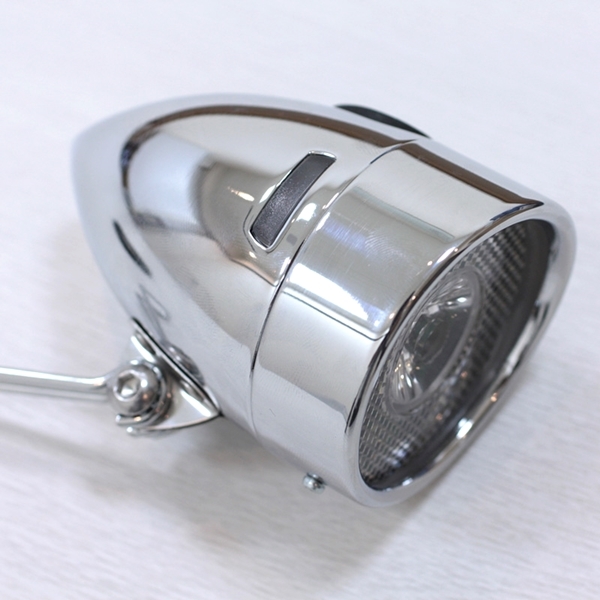 シンプルでシックなデザインの砲弾型ヘッドライトですが、LEDライトで光量も十分で点滅機能も搭載したネオレトロモデル。
