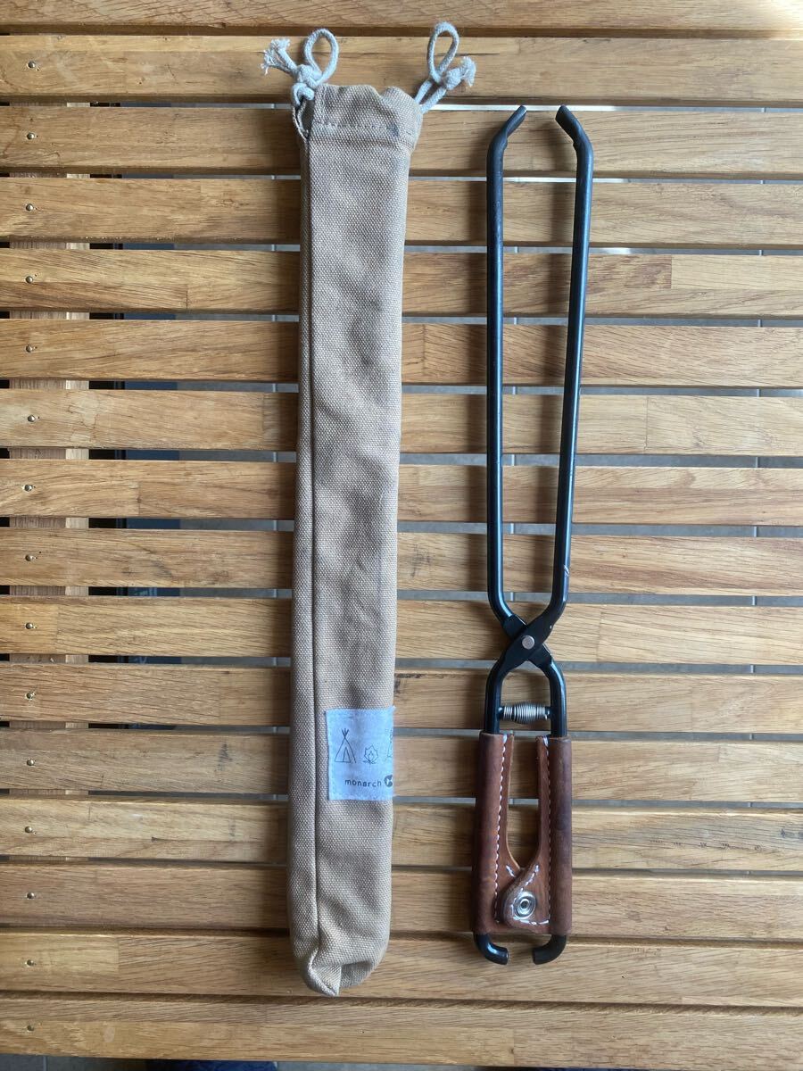 バネ付きで片手で楽々薪いじりが楽しめ、タンニンなめし革を使いしっとりとした感触、