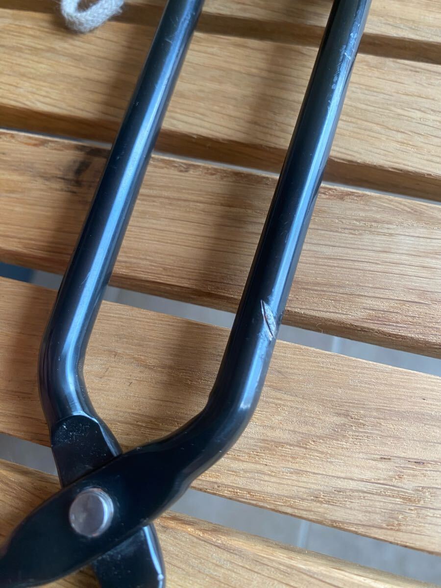 薪バサミの本体/長さ約430mm 幅約38mm 厚さ約11mm 重さ380g