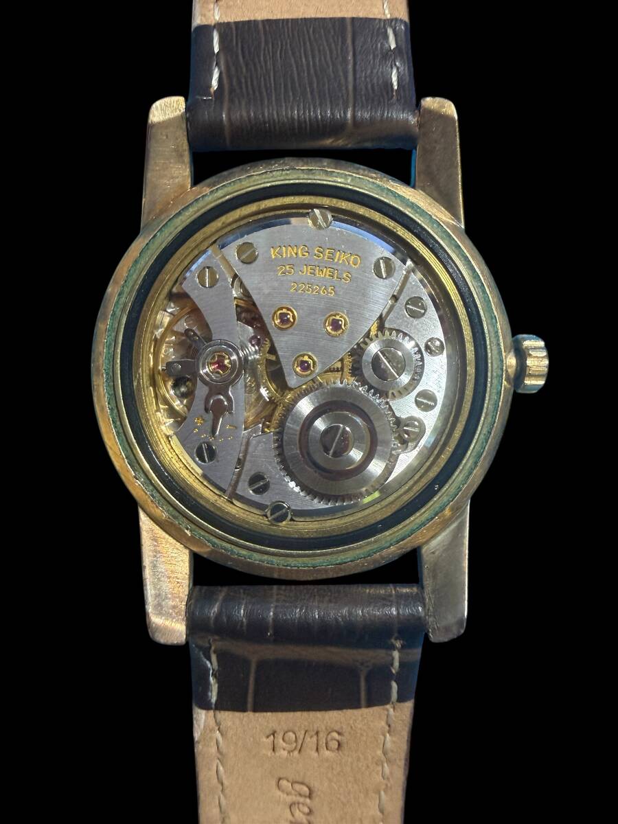 商品説明 | ☆商品名:☆KING SEIKO/キングセイコー/ファースト/SDダイヤル/15034KS/手巻き/1963年 ☆出品物:写真のものすべて ☆商品状態☆ ・KING SEIKO/キングセイコー/ファースト/SDダイヤル/15034KS/手巻き/1963年です。 ◎1963年製のキングセイコーファーストモデル Ref.15034KS です。1961年に亀戸工場(第二精工舎)で製造されたキングセイコーのファーストモデルです。元々シルバーだった文字盤がキレイにローズゴールドカラーに経年変化しており、14金張りケースとの相性も良く雰囲気抜群です。 ・R6年12月にオーバーホールされています。 ・ケースは小傷はございますが大きなダメージはございません。裏ブタの楯メダリオンもキレイに残っています。手巻きや針回しの操作はスムースです。ベルトは社外のベルトが取り付けてあります。 ・文字盤のリダンの有無やリューズ、風防、尾錠など社外品に交換されているかもしれませんが、当方ではオリジナルと比較するものが無いのでわかりません。 社外製部品に交換されている可能性が有ります。写真で判断して頂き、入札してください。 ・これらに関する返品・キャンセル等は一切受け付けませんので、気になる方は入札をご遠慮ください。 ・動作も特に問題なくタイムグラファー平置き計測でも+30秒以内と精度は良好だと思います。 ・品番:15034KS ・ケース素材:14金張り ・ケースサイズ:約35mm(リューズを除く) ・文字盤:白系 ・ムーブメント:手巻き ・ラグ幅:19mm ・日差:+30秒以内(タイムグラファー平置き計測) ・防水性:非防水(アンテークのため) 以上の事をご理解の上、よろしくお願いします。 |