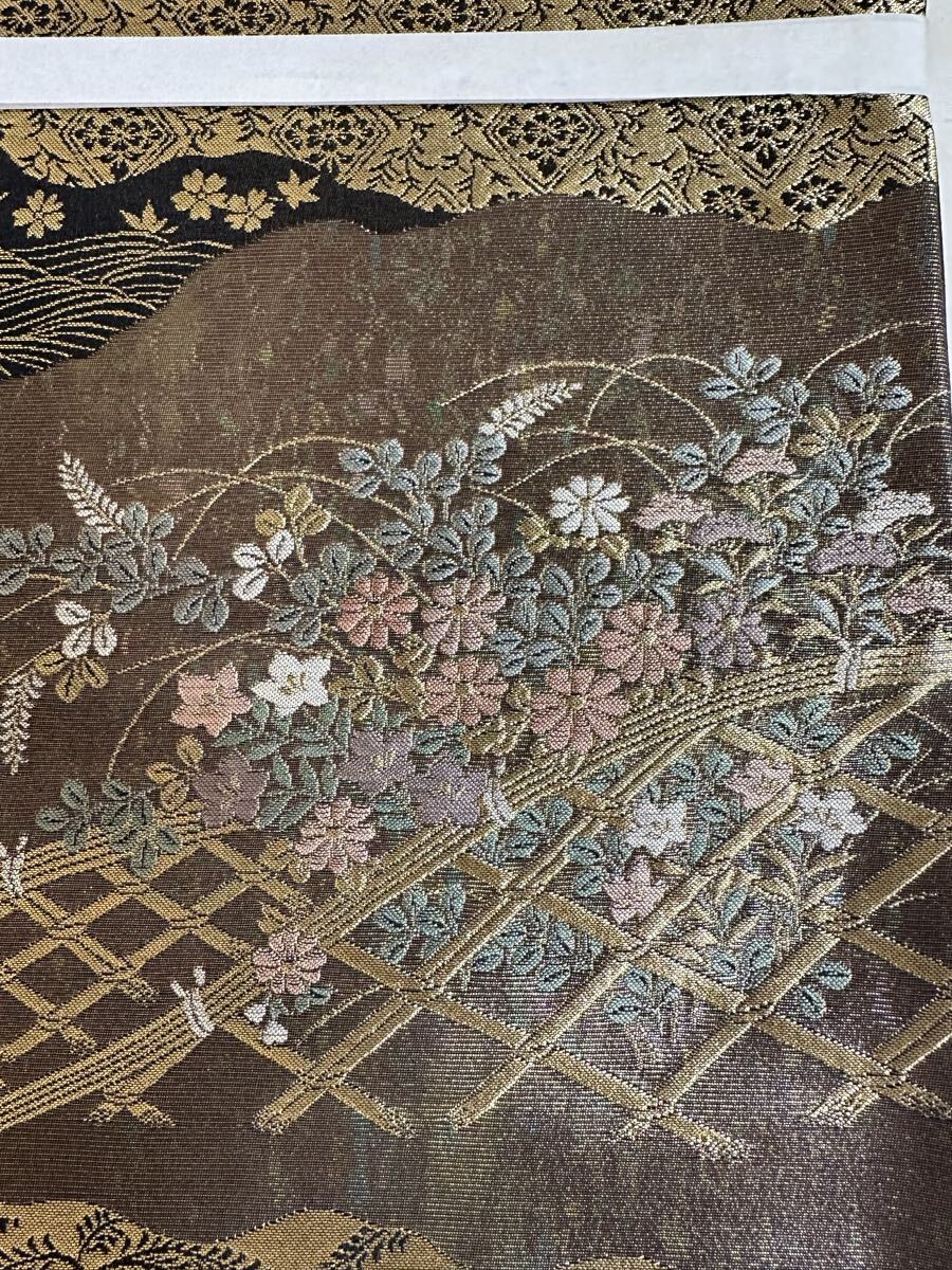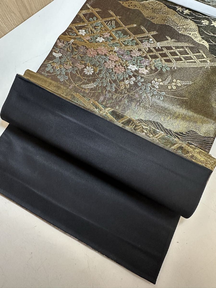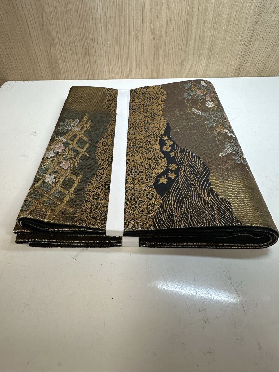 商品名 | 袋帯 帯 仕立て帯 正絹 金糸 金彩 刺繍 着物 黒地 帯幅約31㎝ |