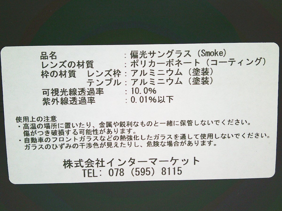 偏光サングラス(Smoke) ポリカーボネート(コーティング)レンズ