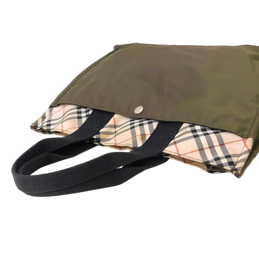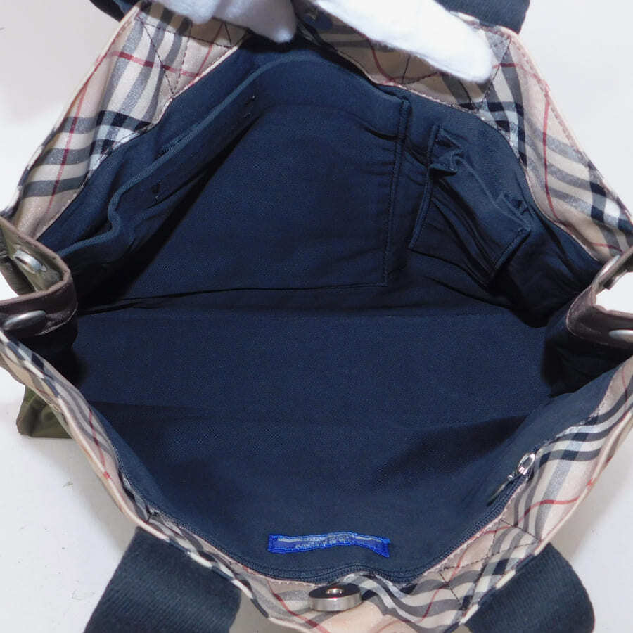 1円■美品/バーバリーブルーレーベル/トートバッグ/カーキ系/ナイロン/普段使い/BURBERRY BLUE LABEL ■E.Bil.tI-29[中古]