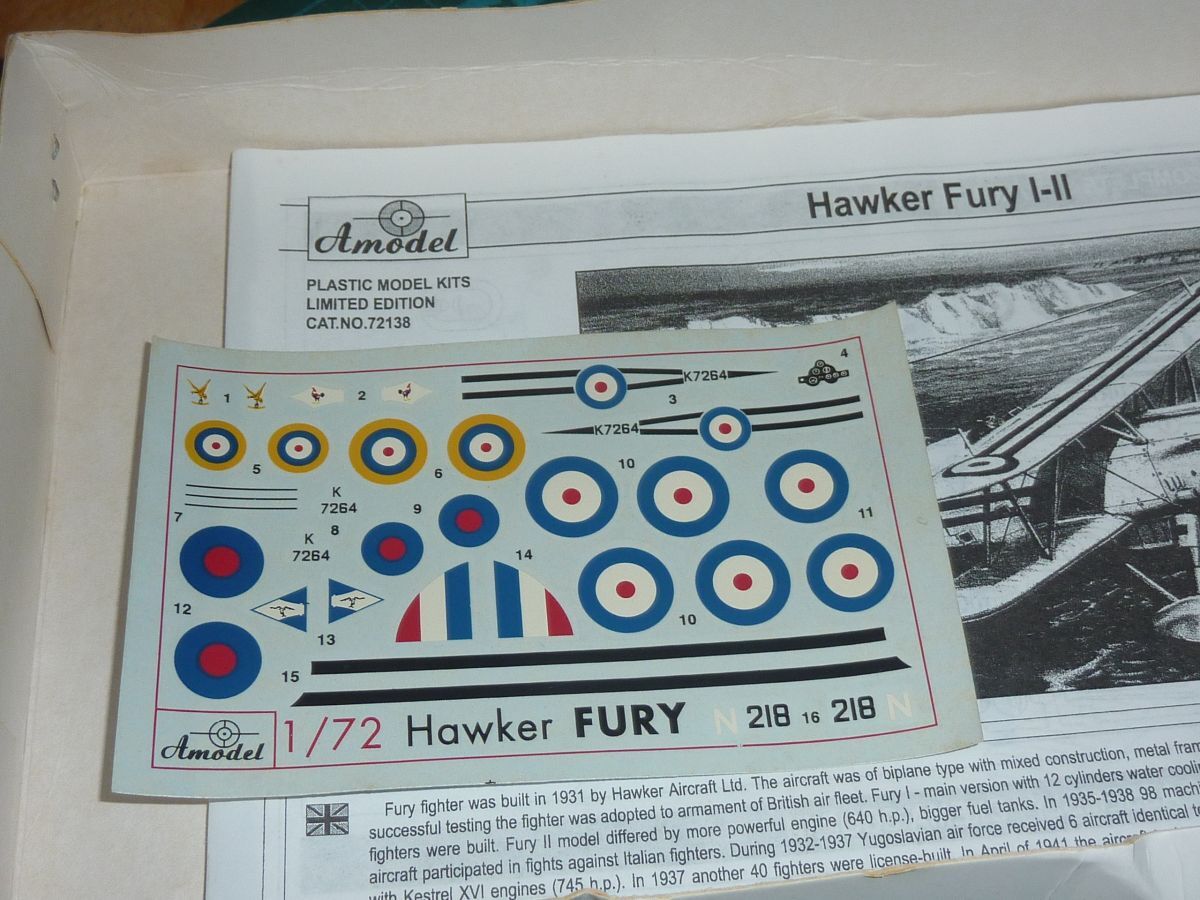 1/72 ホーカー フューリー Mk.Ⅰ/Mk.Ⅱ イギリス複葉全金属製戦闘機 Aモデル/A model Hawker Fury Ⅰ/Ⅱ