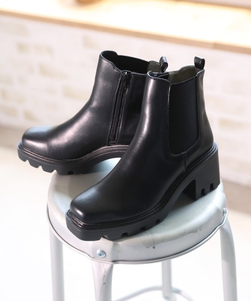 参考商品名:厚底スクエアトゥサイドゴアショートブーツ