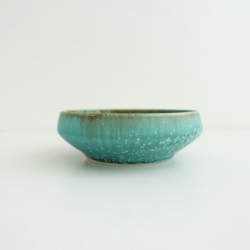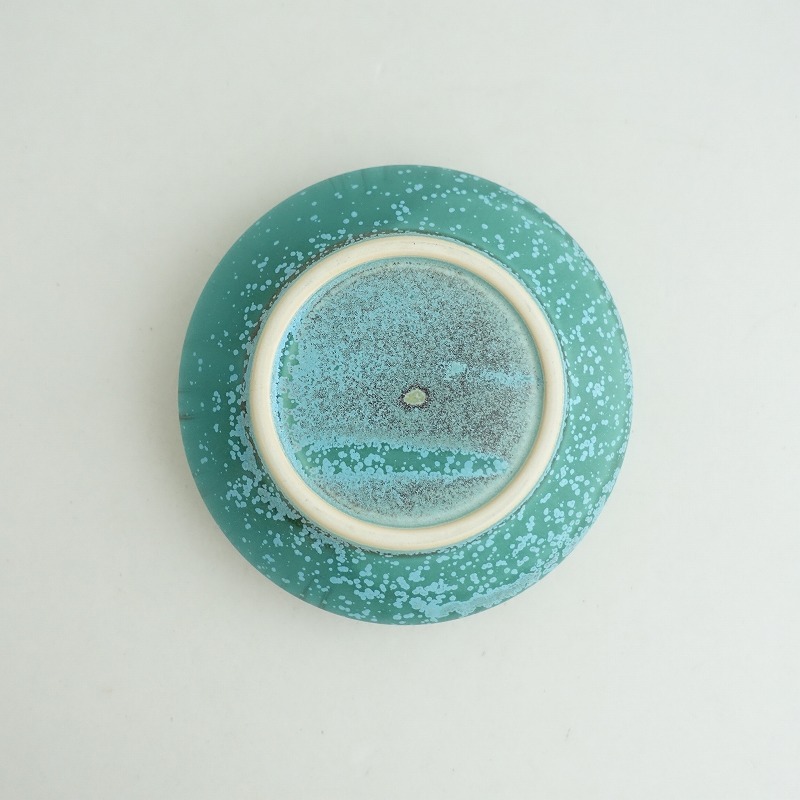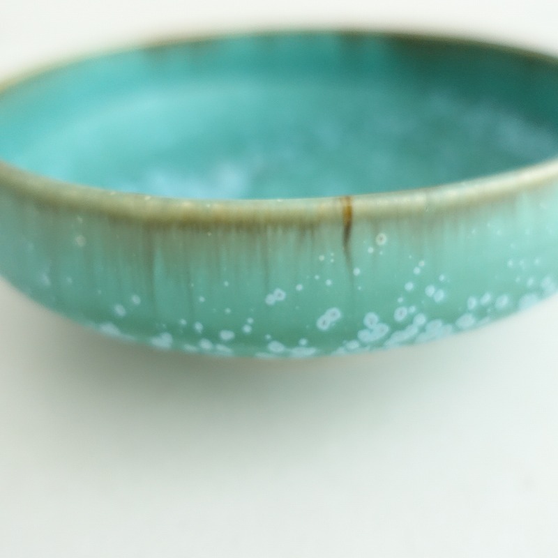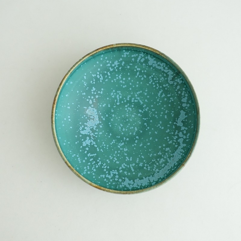 | 宮本めぐみさんのトルコ釉 ドラ鉢 16.5cmです。カラーは カラーは鮮やかなトルコブルーに表れた結晶が美しいドラ鉢です。ぷっくりしたフォルムと、神秘的な惹きつける釉薬が素敵な作品です。 |