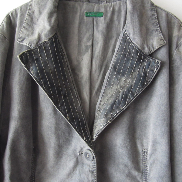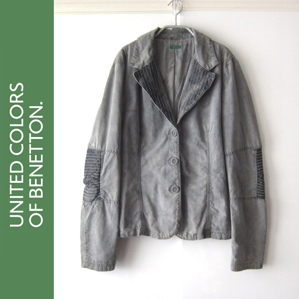 美品 BENETTON/ベネトン★ USED加工 デニムジャケット グレー