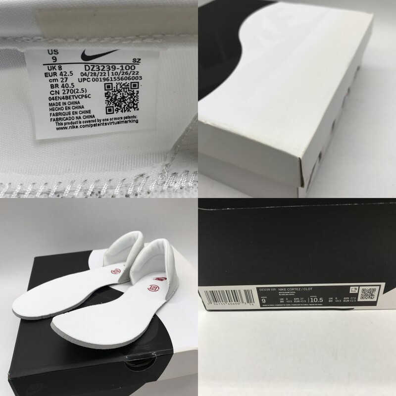 CLOT Nike Cortez クロット ナイキ スニーカー White and Game Royal DZ3239-100 新品同様 箱付き タグ付き コルテッツ ランク:S ほぼ未使用同様の美品です。 箱に変色、傷みありです。 前のユーザー様が喫煙者だった為、タバコの匂いがついています。 気になる方は購入をお控え下さい。 ※店頭でも販売している為、試着程度の使用感がございます。 予めご了承ください。 ※写真にないものは付属しておりません。 原産国/製造国:中国 カット:ローカット 靴のアウトソール素材:ゴム 個数:1 靴のサイズ(US:Men):9 靴のサイズ(UK):8 靴のサイズ(EUR):42.5 カラー:ホワイト アンド ゲーム ロイヤル |