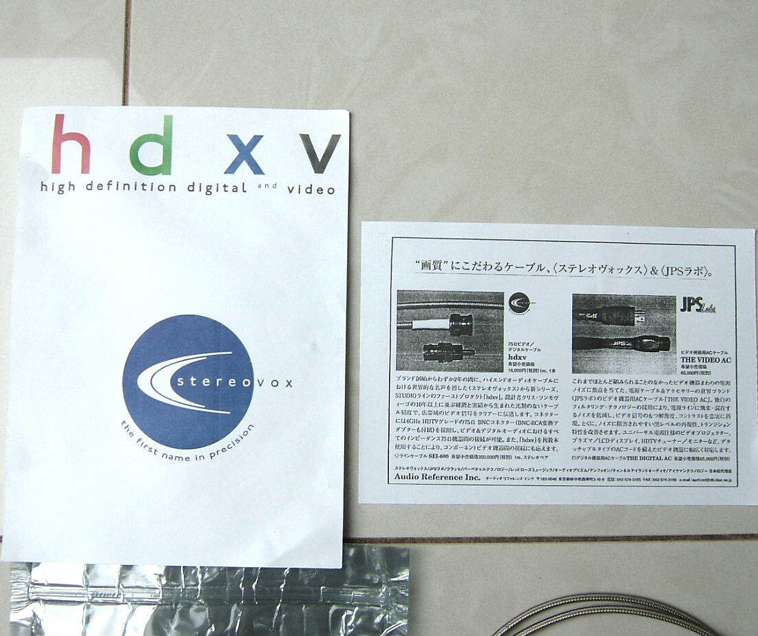 新品 貴重 ハイエンド RCA変換プラグ2個付 STEREOVOX ステレオヴォックス HDXV デジタルケーブル 1.0m 純銀メッキ銅 正規品 BNC RCA NOS ②