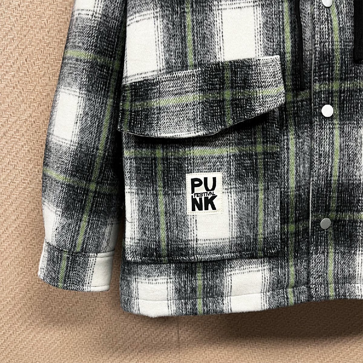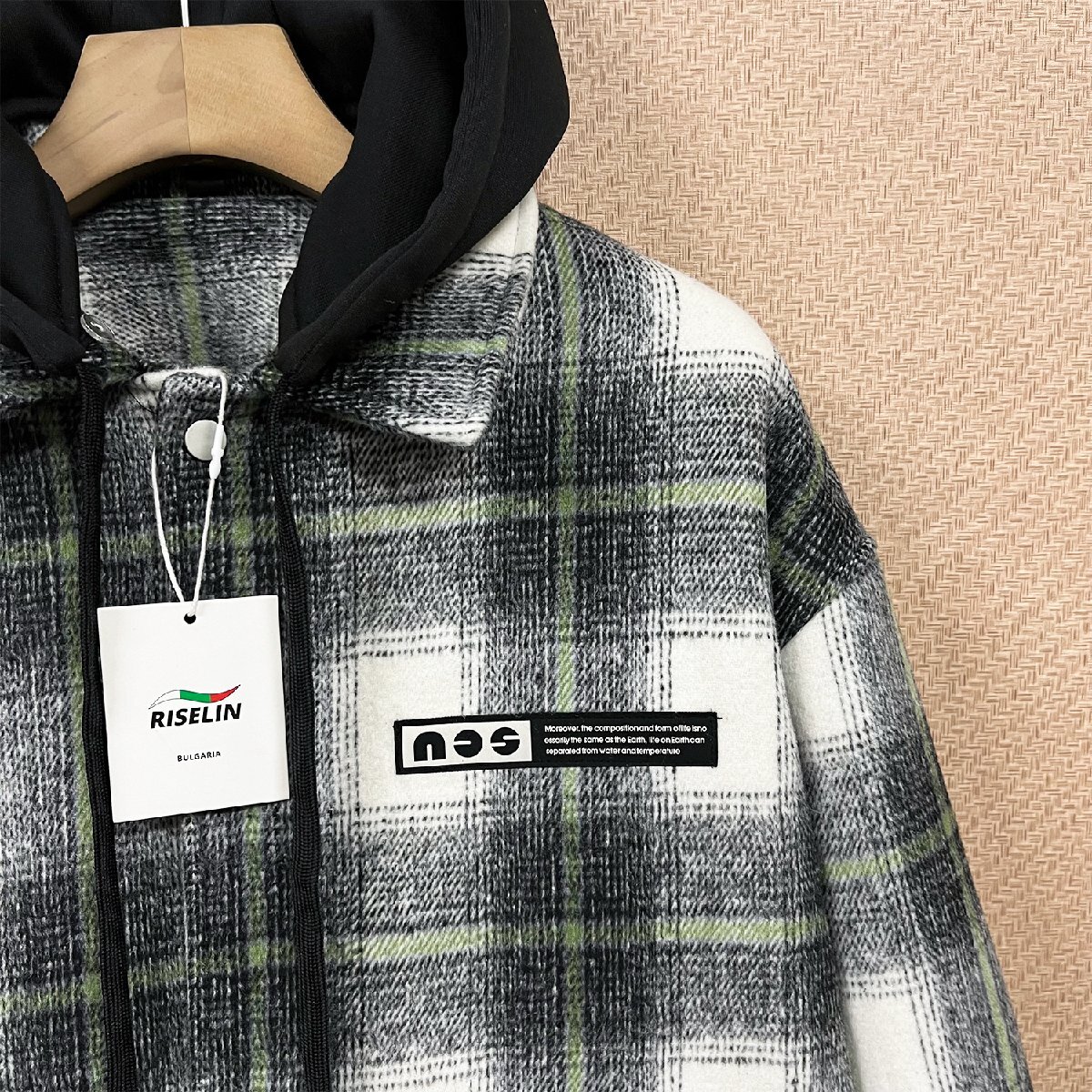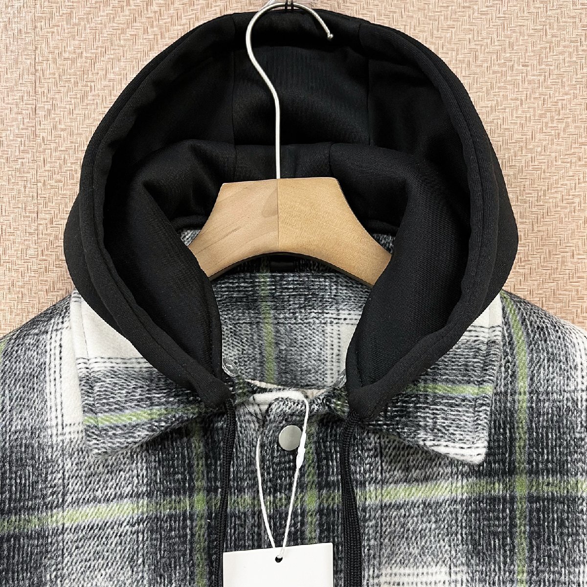 スタイリッシュで汎用性の高いチェック柄に上品な風合いを落とし込んだジャケットです。フード取り外し可能のデザイン、フードの仕様と折り襟の仕様を両方楽しめます。フードが付いているとき、ある程度に風を防ぎ、保温性高くなります。フード取り外しのとき、大人のカジュアルスタイル演出することができます。三つのポケット(サイトポケット*2/裏ポケット*1)が付いています。基本的な小物を収納できるし、収納力が高い!寒い日に冷たい手をサイドポケットに入れて温めることができます。