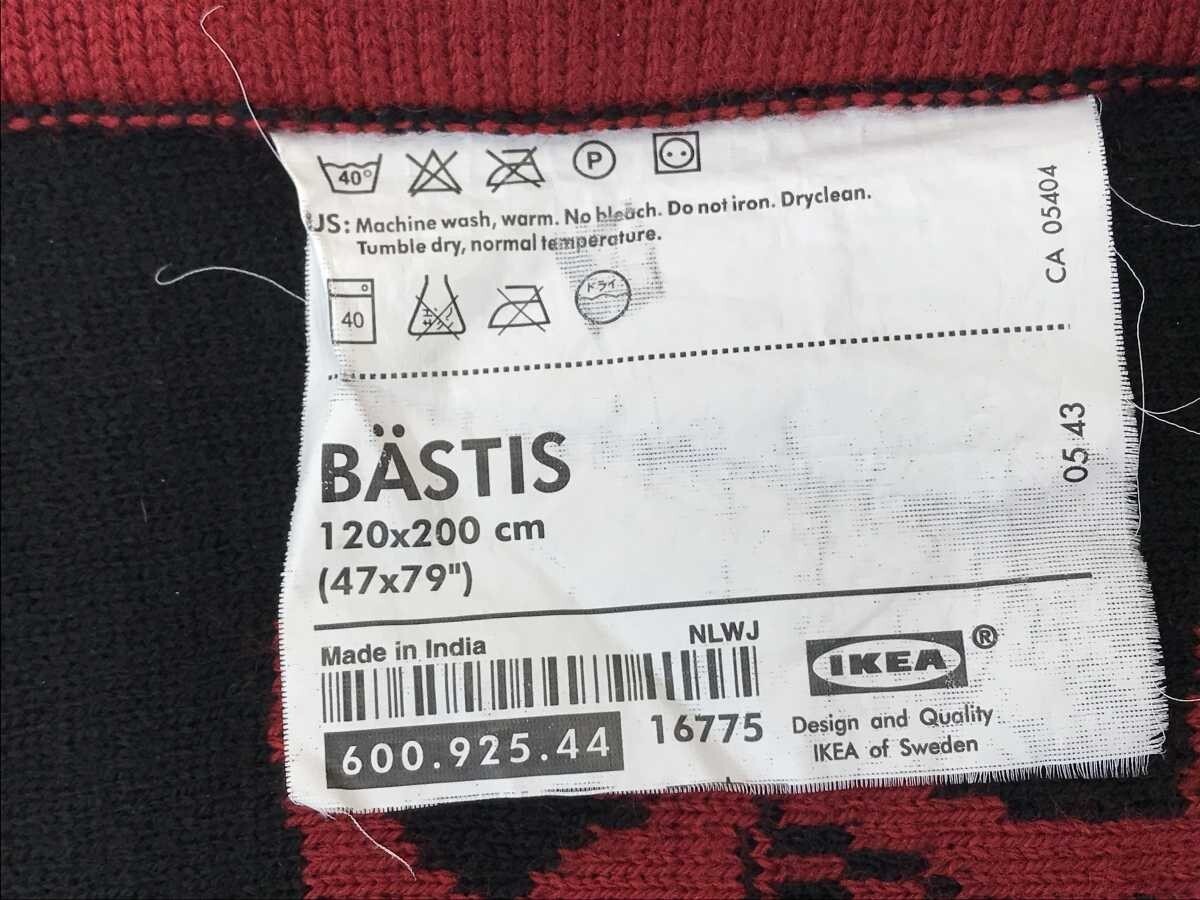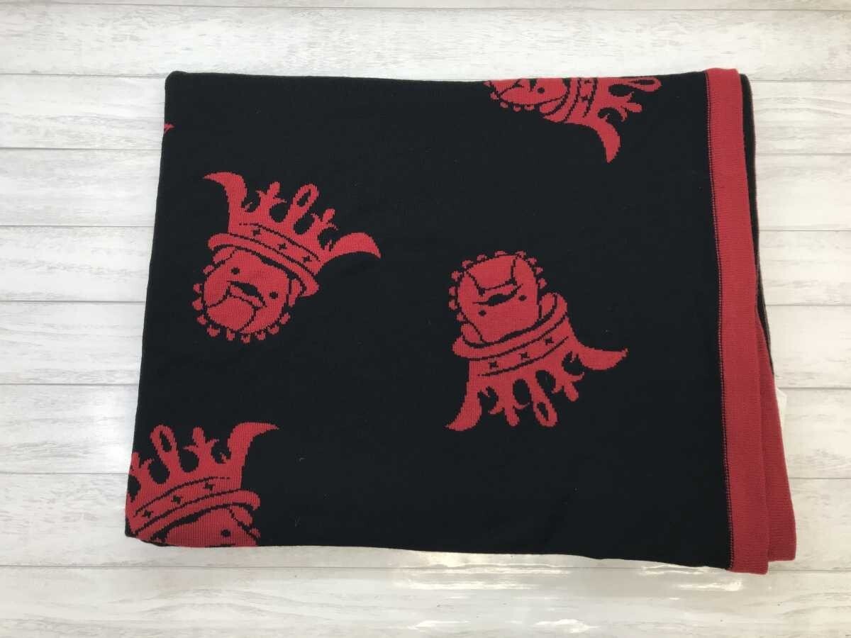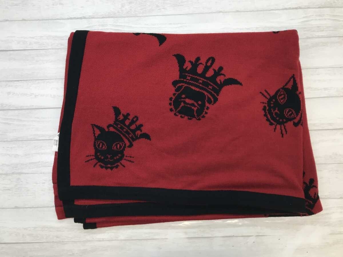 イケア IKEA レトロ 北欧 インテリア小物 ベスティス BASTIS 王冠 クラウン アニマル ネコ 猫 イヌ 犬 ジャガードニット ブランケット 黒赤です。