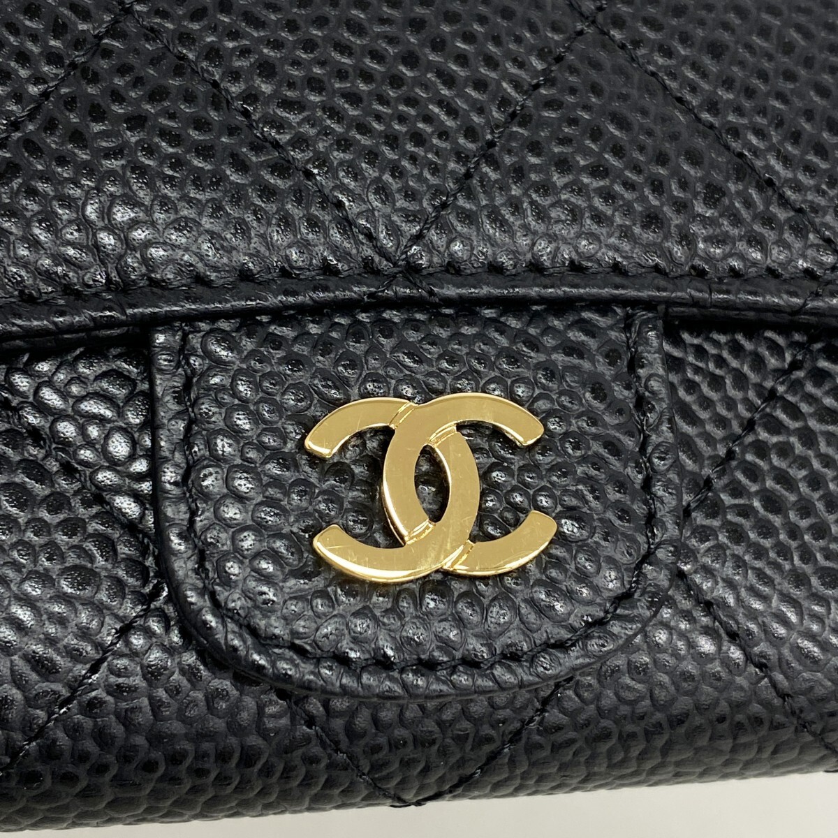 【5mb2316-h】シャネル キーケース マトラッセ キャビアスキン ブラック ゴールド金具【中古】レディース
