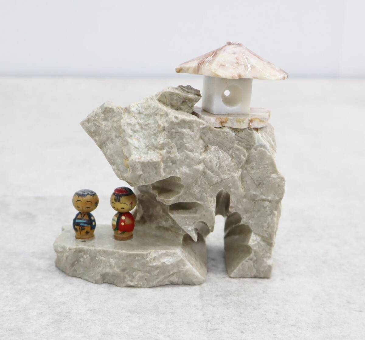 ◎ 山口県 秋芳町|大理石 美術品 こけし 人形|秋芳大理石協同組合 和風置物 玄関飾り|石灯籠 日本伝統 民芸品 右横書き■O9230