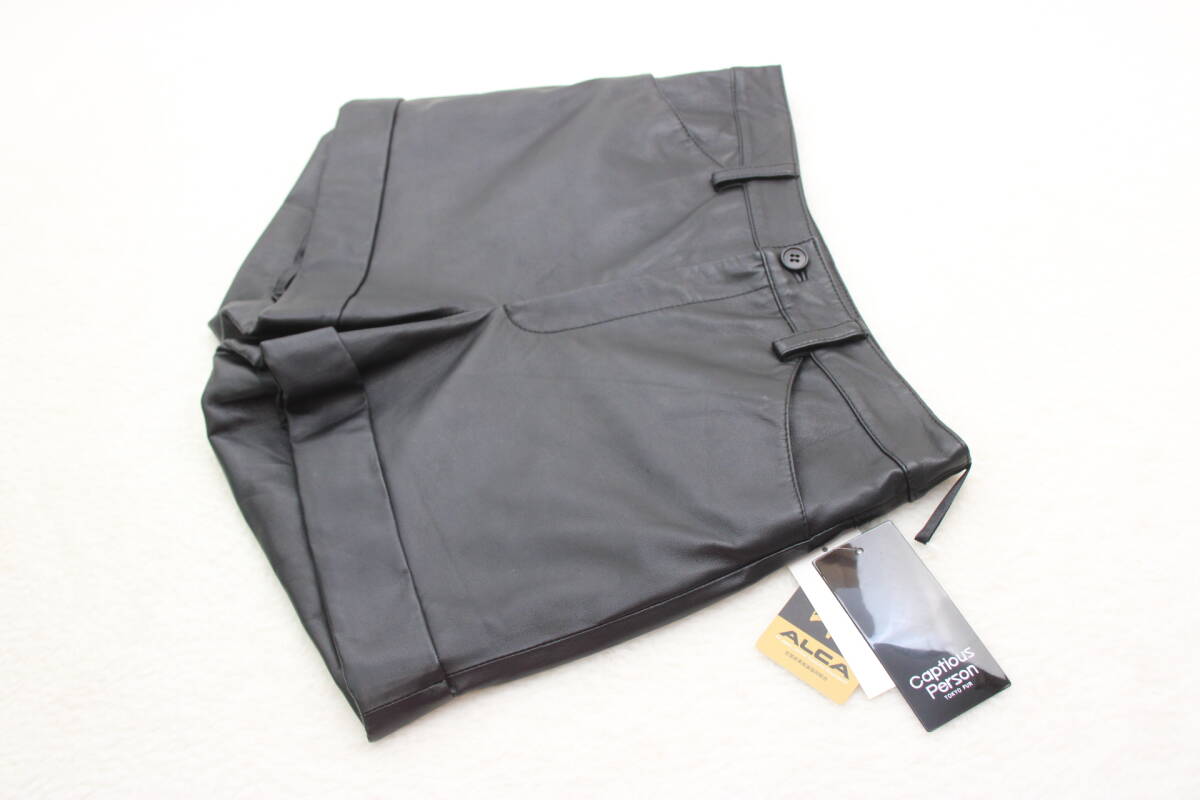 5394 新品タグ付き 高級羊革レザーロールアップショートパンツ ブラック9号 定価¥26,000+税