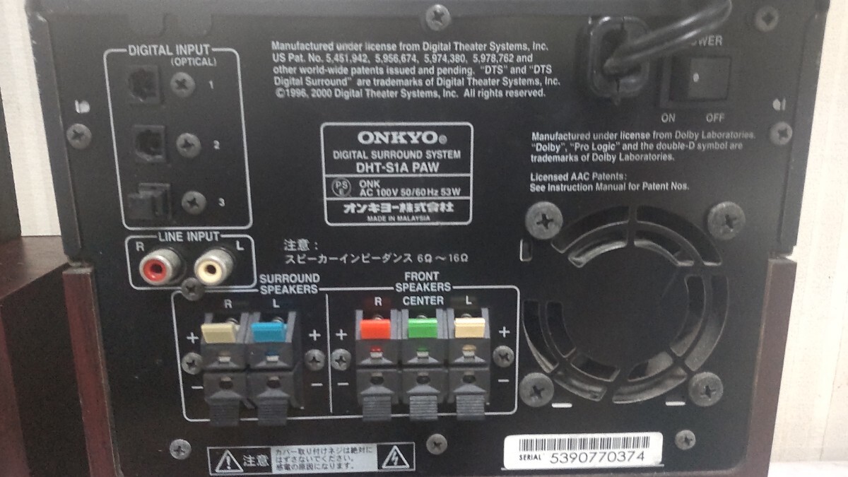 S3790 ONKYO 5.1ch ホームシアター デジタルサラウンドシステム/DHT-S1A PAW/スピーカー/音響機器/オンキョー 通電○ 動作本文参照 現状品