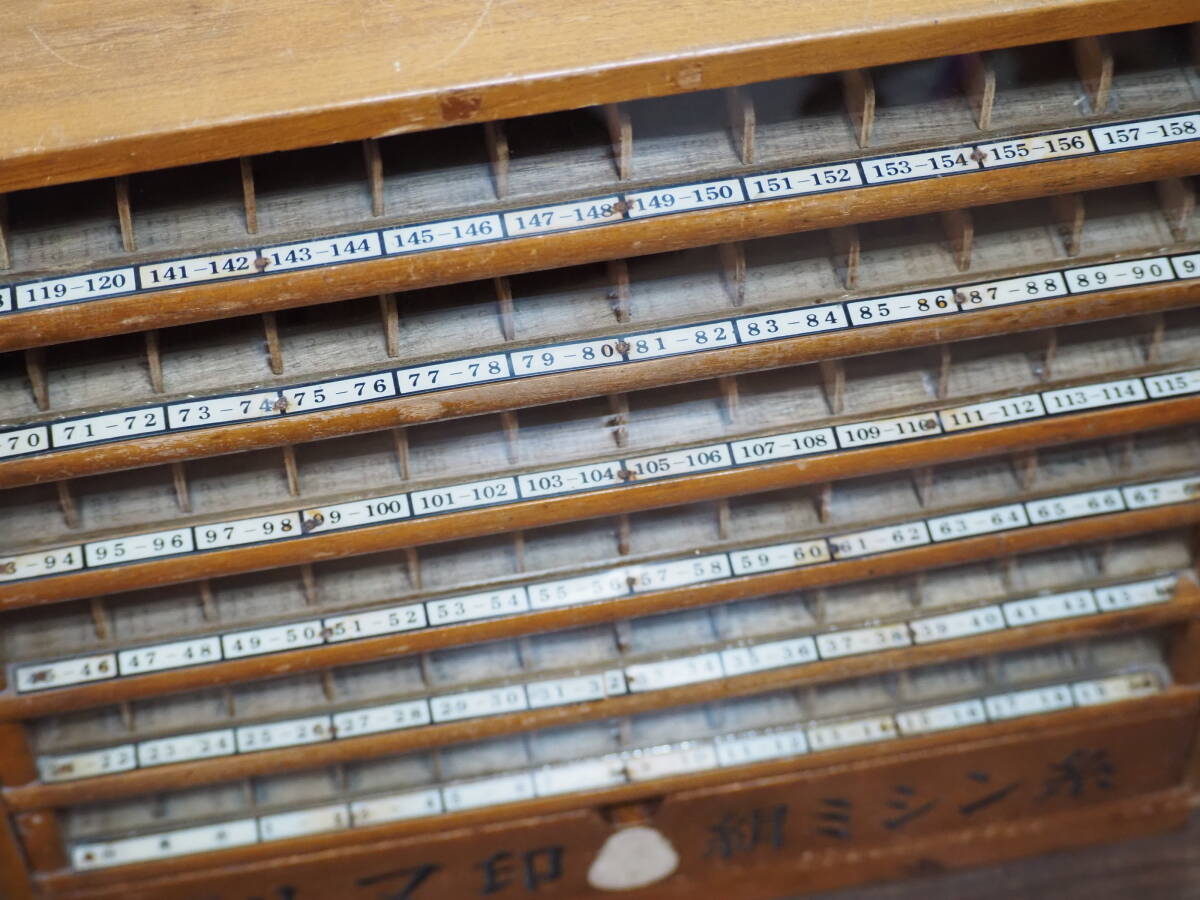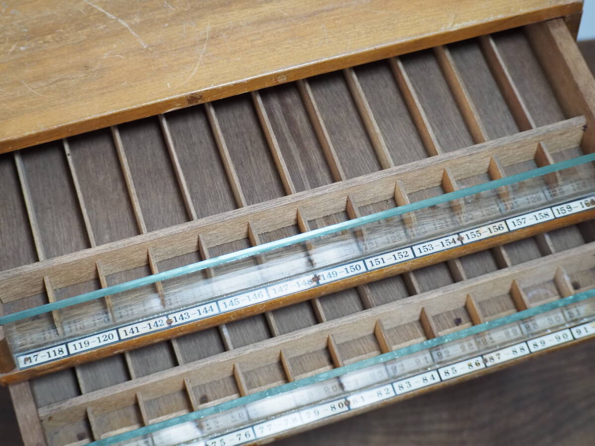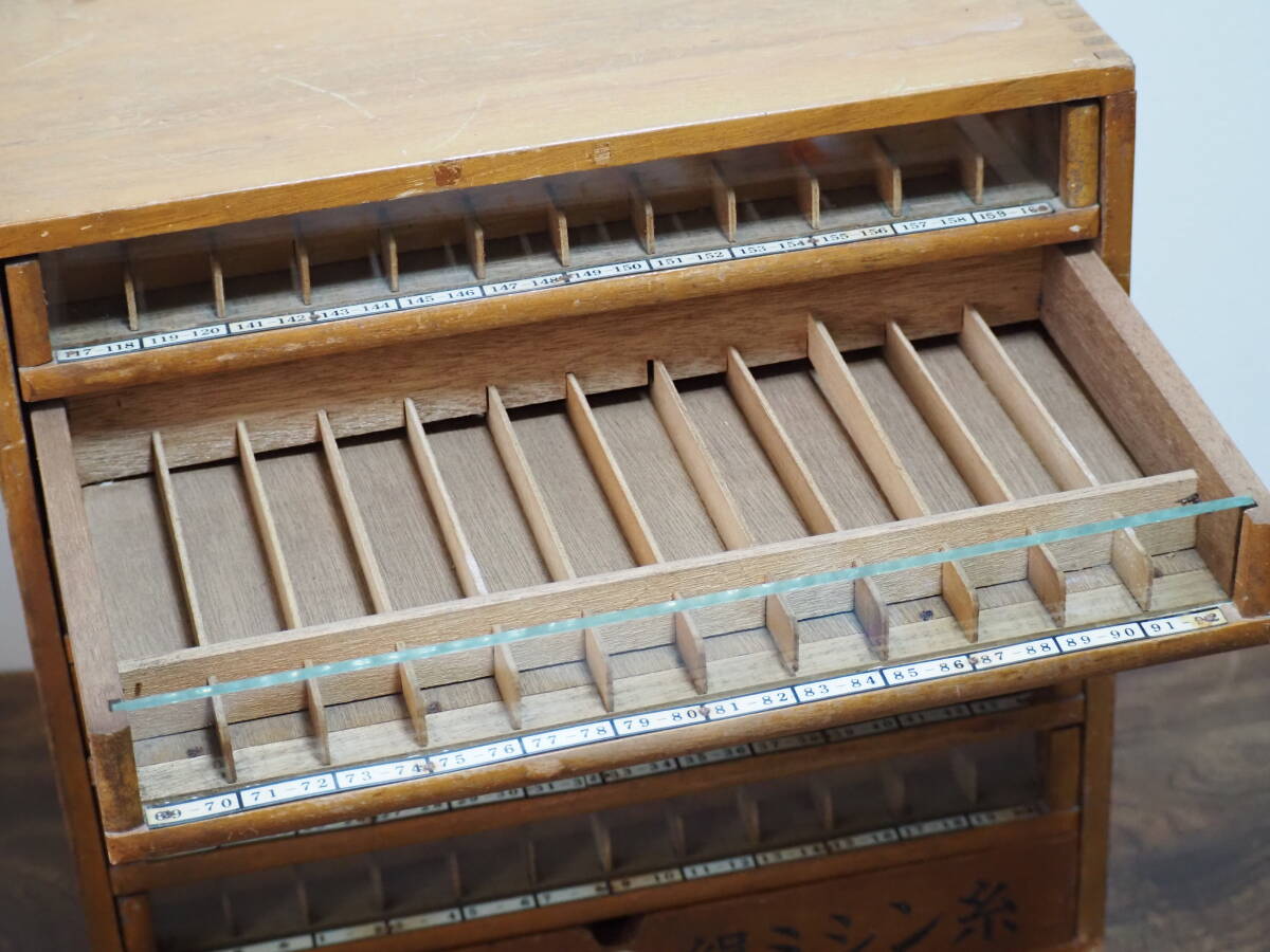 昭和レトロ【ダルマ印 絹ミシン糸】7段 ガラス入小引き出し ミシン糸ケース 陳列ケース◆非売品 アンティーク 木製陳列棚 収納棚 店舗什器です。