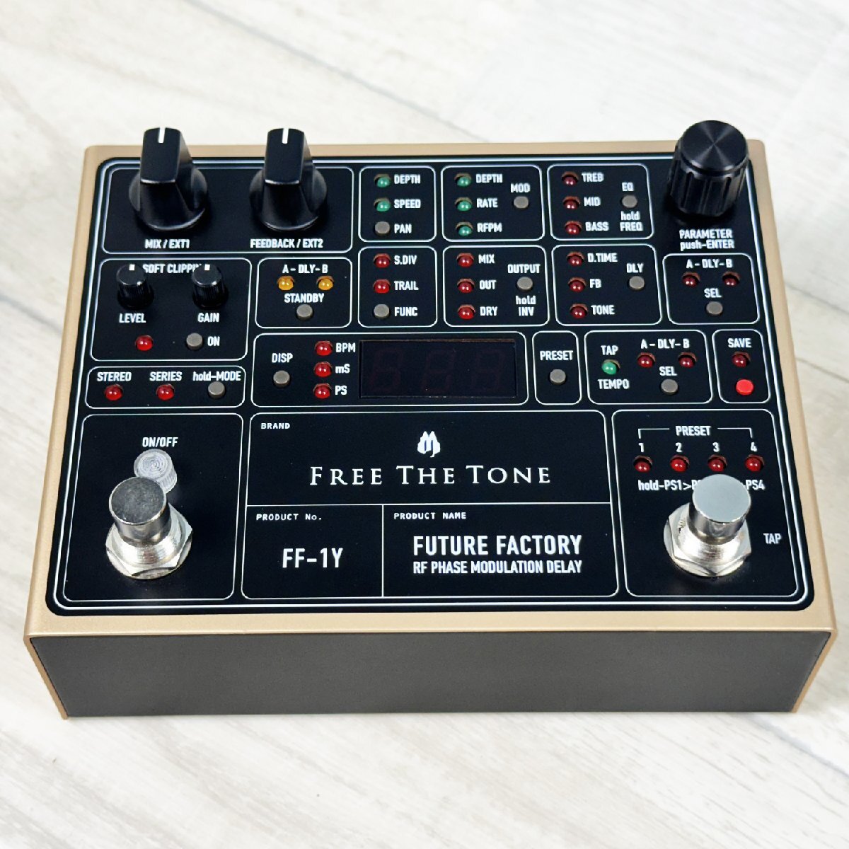 FUTURE FACTORYの内部には、2台のディレイが内蔵されています。ステレオディレイとして使用したり、2台のディレイを直列接続し、モノラルで使用したりすることが簡単に行えます。