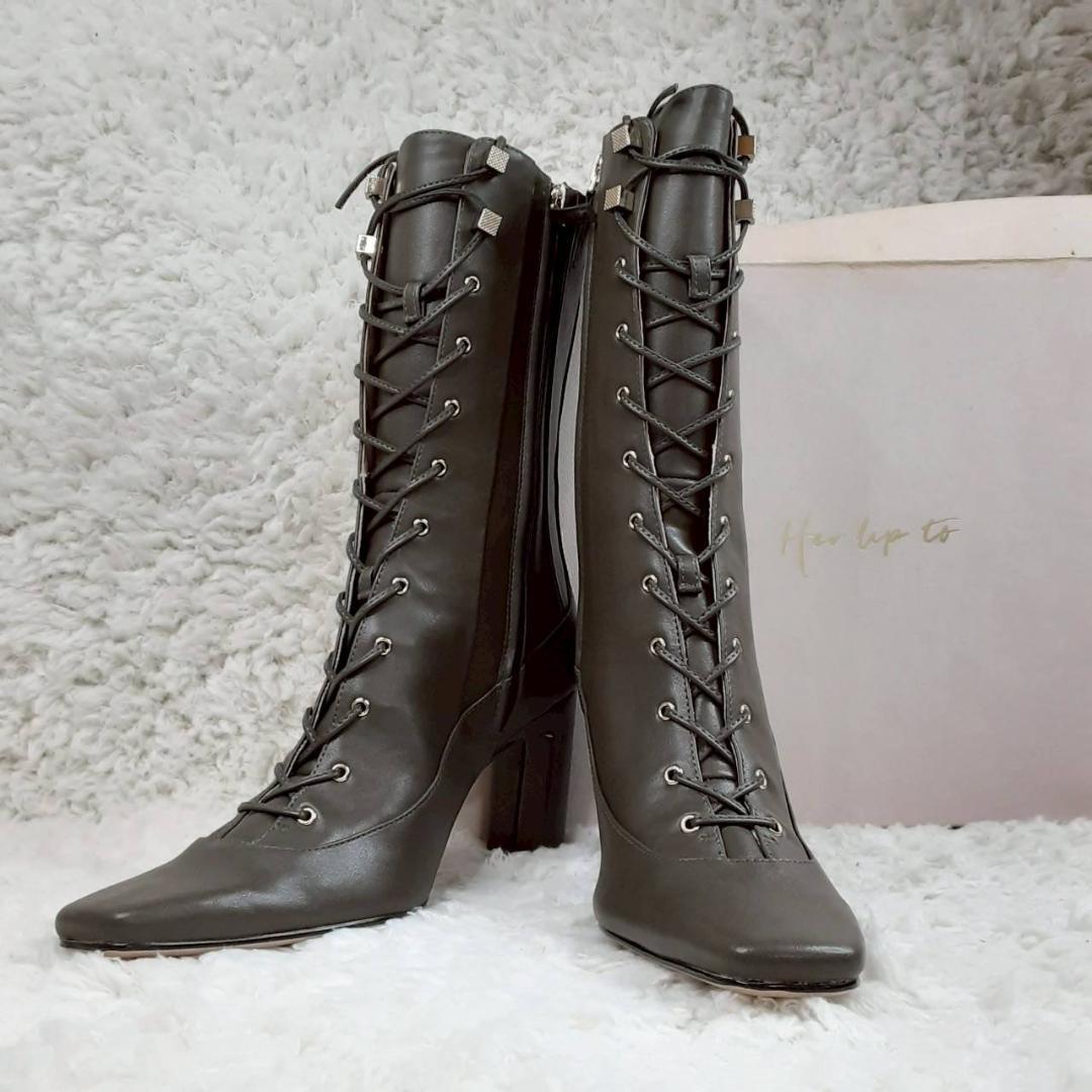 新品未使用タグ付き 24㎝◎Her lip to ハーリップトゥ ハイヒールブーツ フォレスト 森林色 サイドジップ 編み上げ 1214411088 定価19000円 箱付き こじはる 小嶋陽菜 AKB48