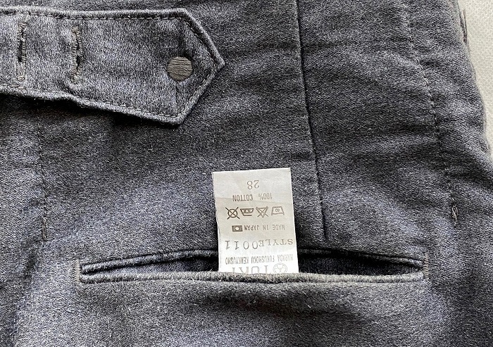 ・素材: コットン100% ・カラー: グレー ・サイズ: 28 実寸(平置きにして)ウエスト 約74cm・股上 約25cm・股下 約80.5cm・腿幅 約29.5cm・裾幅 約27cm(多少の誤差はお許しください) 「TUKI(ツキ)」の定番、マリンパンツです。 ズドンとしたゆったりとしたシルエット。 裾がわずかにフレアになった綺麗なラインです。 股下にはマチつきでつっぱりもなく履き心地が良い。 フロントは4つのボタンで留めるクラシックなセイラーパンツのデザイン、 更に内側に2つのボタンで前留めします。 肉感のある微光沢のバックサテンのコットン100%素材。 ジーンズの産地岡山でこだわりを持って仕立てられるTUKIのボトムスは、履き込んでいくほど味が出て育って行くのが一番の楽しみです。 見る者を圧倒する雰囲気とムードを合わせて持った唯一無二のパンツです。 目立つ大きな傷み汚れなし。 MADE IN JAPAN かなりお値打ちだと思います。この機会にぜひ! 他にもいろいろ出品しています。 管理番号: 142510Y-090588 |