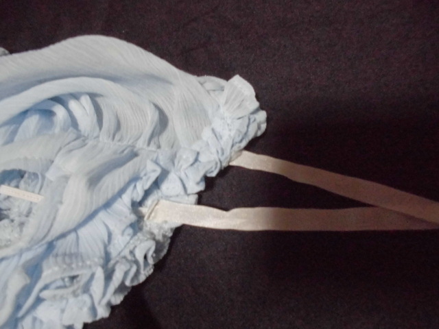 畳みジワは、シワになりにくい素材なようでして、あまりありませんが、しまう際にうっかり胸元のリボンを結んだままにいていたため、シワがリボンにあります!