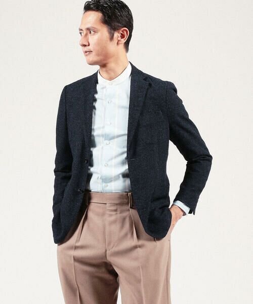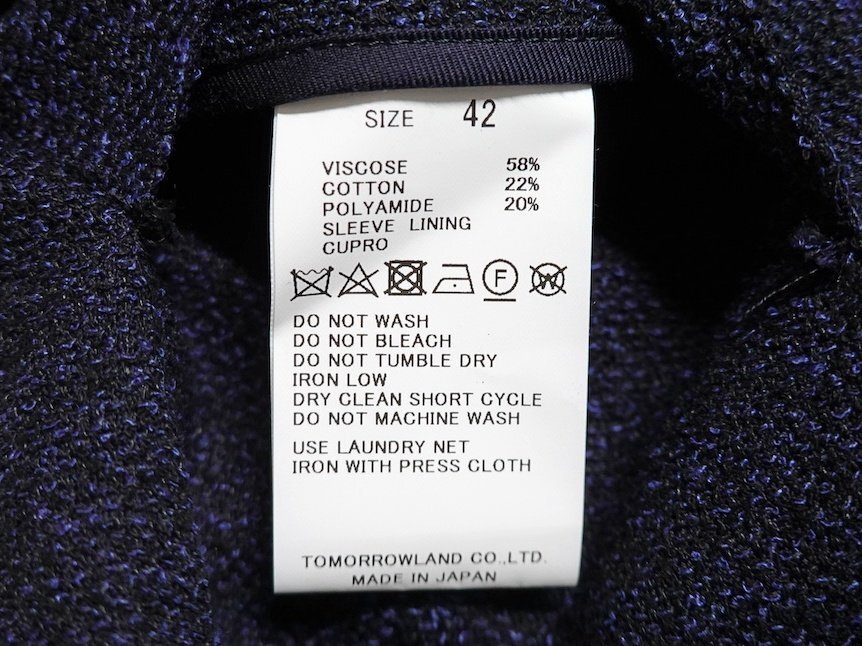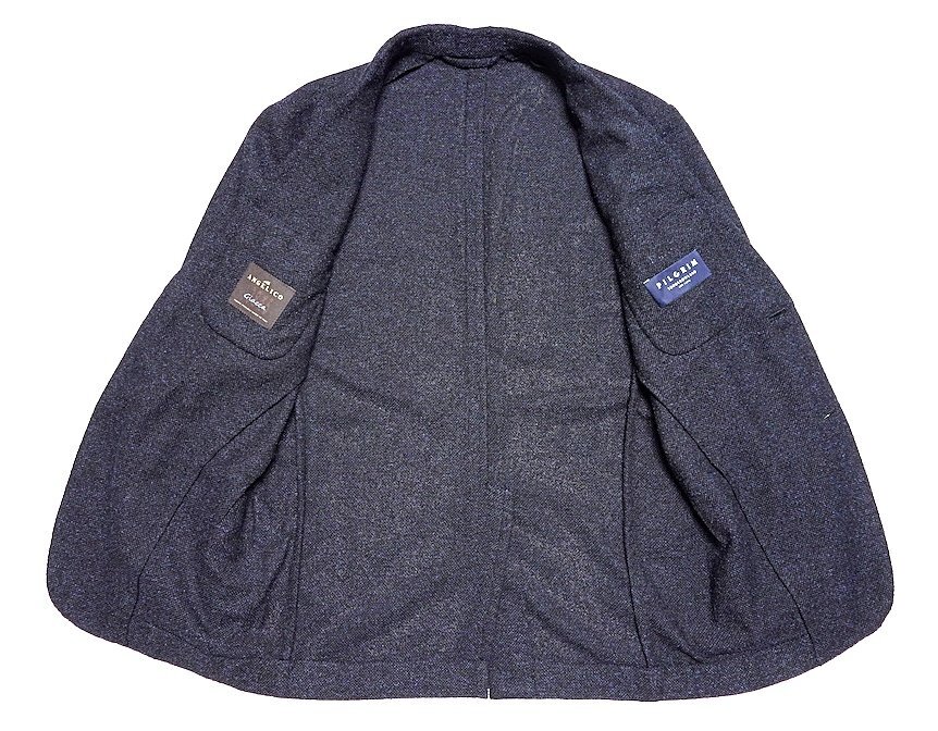 22SS 美品 TOMORROWLAND PILGRIM ピルグリム ANGELICO リングツイード シングル テーラードジャケット レーヨン ネイビー メンズ 42