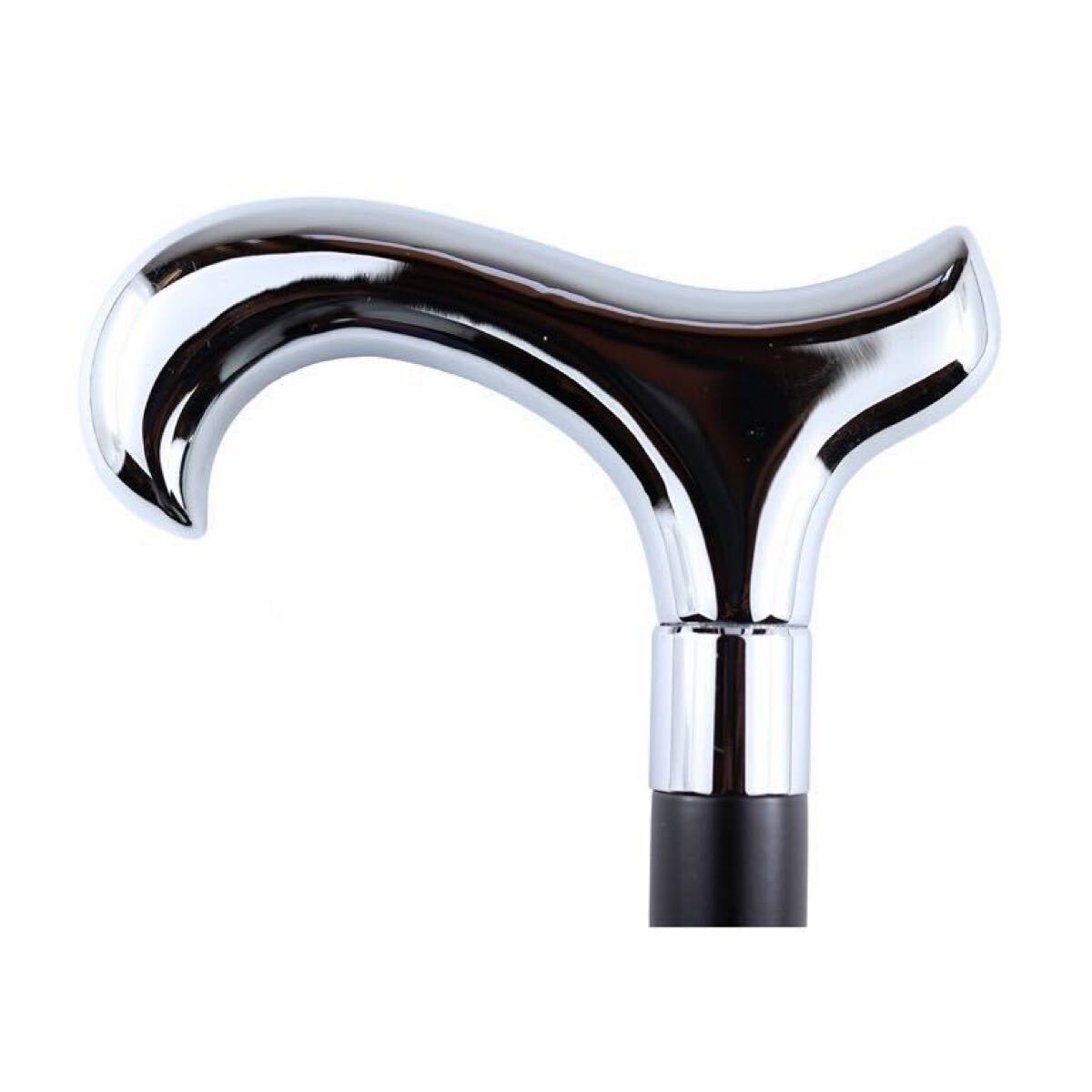 杖全体のブラックカラーと高級感のあるシルバーの持ち手が、紳士的で落ち着いた印象を演出します。