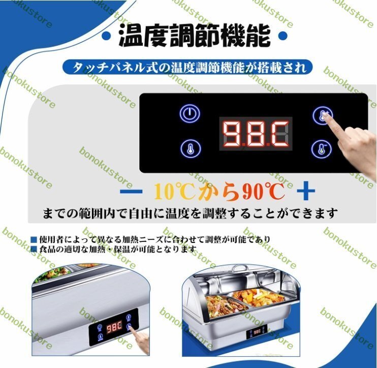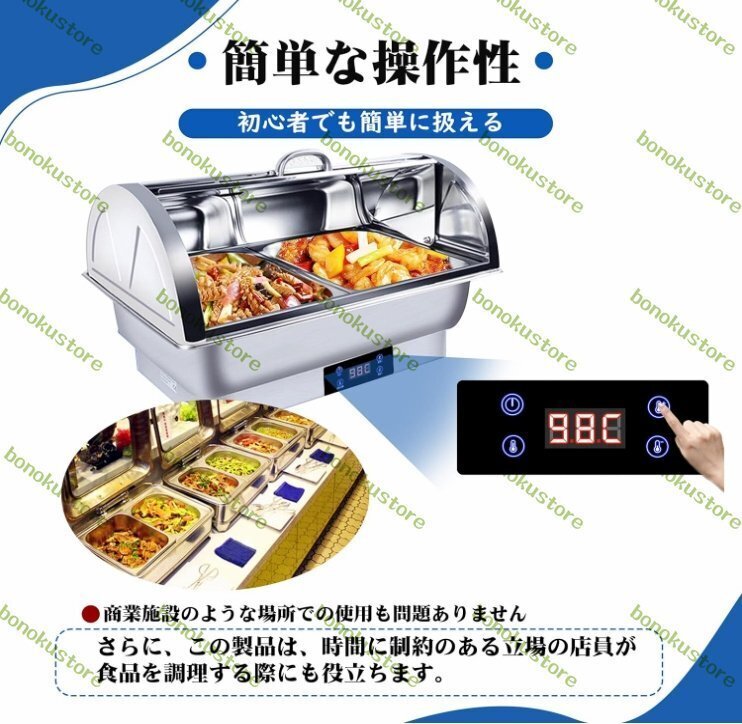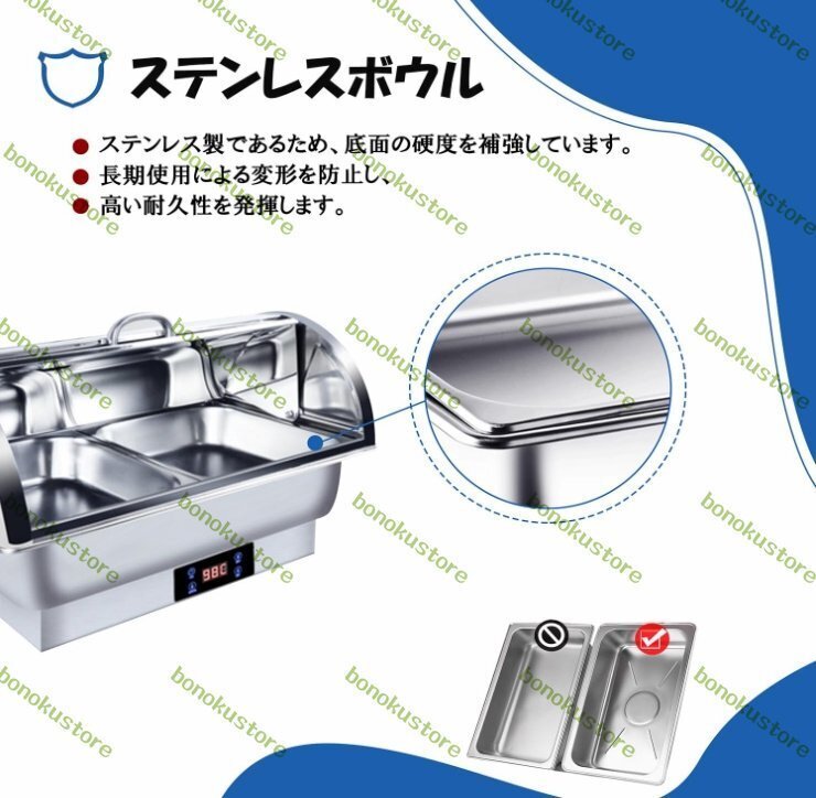 【商品説明】 ※新品未使用商品の容量は9Lです、2つの皿が含まれています、1つの皿のサイズは27*33*6.5です加熱方式:オールインワンの加熱方式を採用しており、使用時は電源に接続するだけで加熱・保温が可能となります。また、底面の水盤には水を加える必要があります