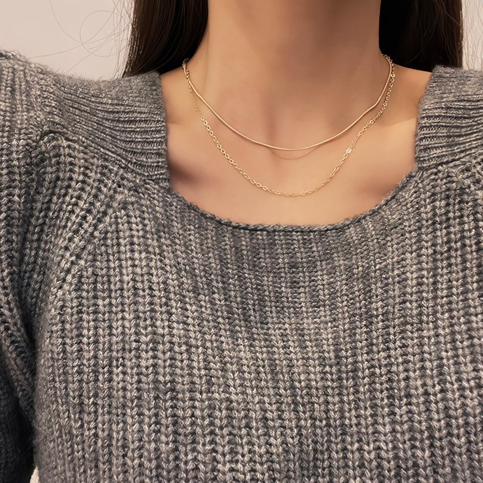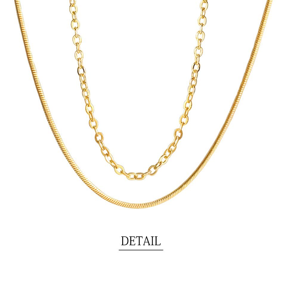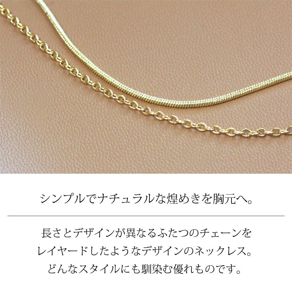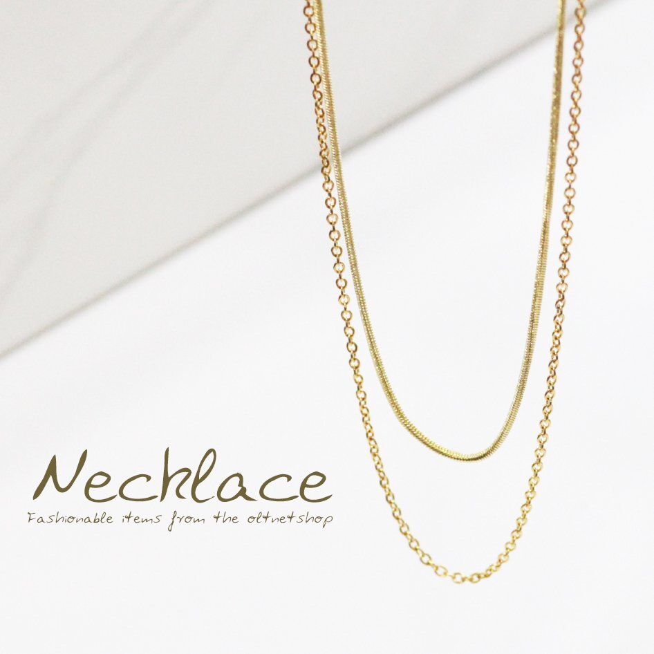 新品/ネックレス/レディース/2連/二重/重ね着け/シンプル/ゴールド/合金/メタル/レイヤード/ダブル/あずきチェーン/スネークチェーン/女性