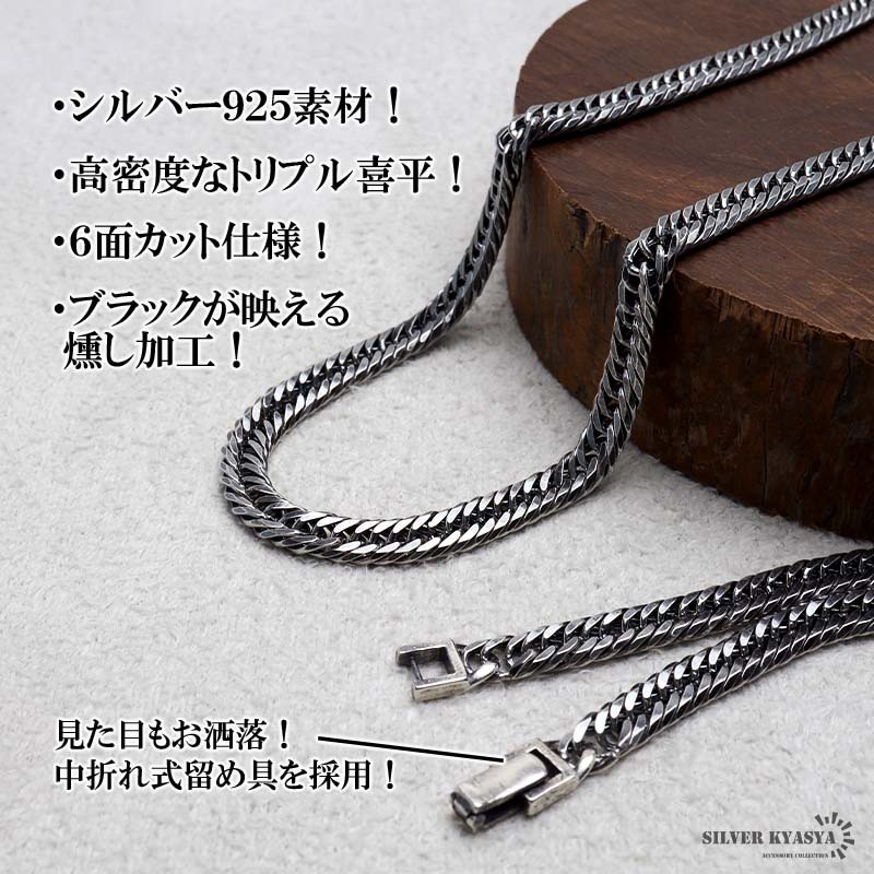 シルバー925 6面カット トリプル 喜平チェーンネックレス 中折れ 喜平ネックレス 幅4.5mm 50cm 金属アレルギー対応