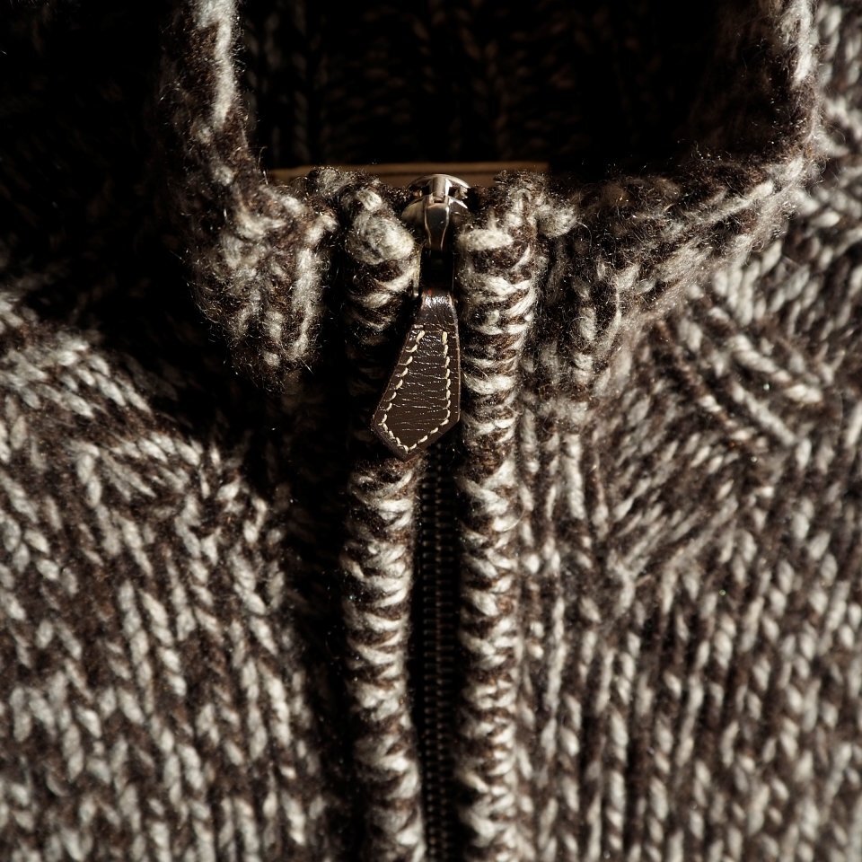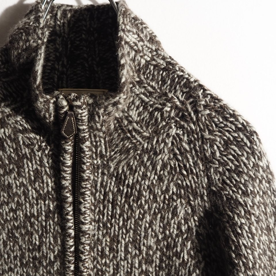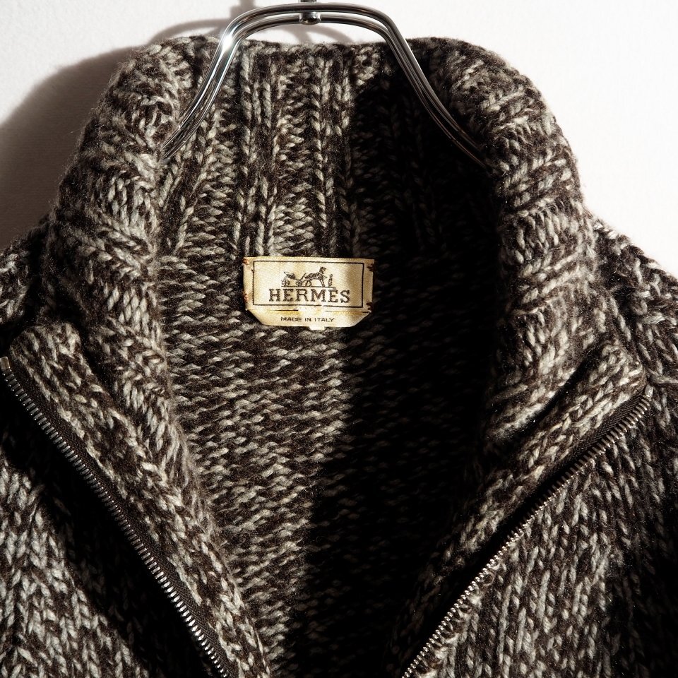 R0207P ▼HERMES エルメス▼ カシミヤ ジップニット ブラウン グレーミックス L / カシミヤニット カシミア ブルゾン 秋冬 rb mks