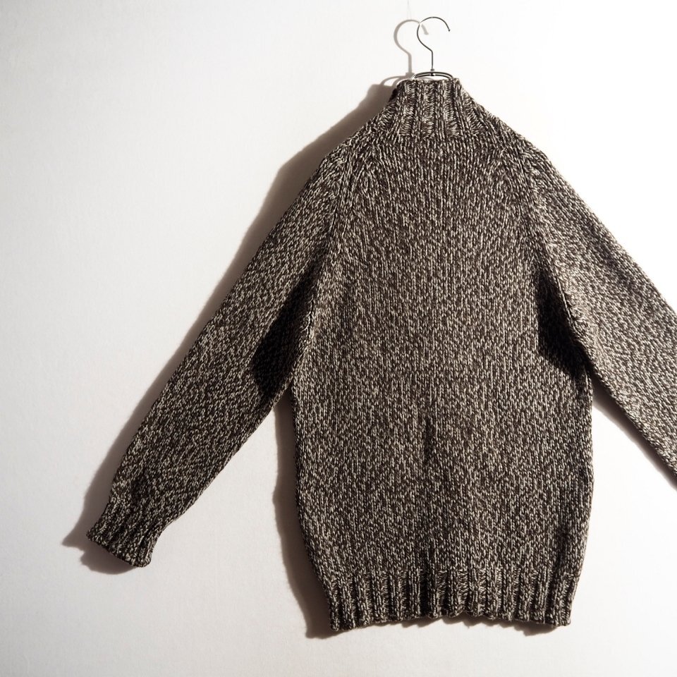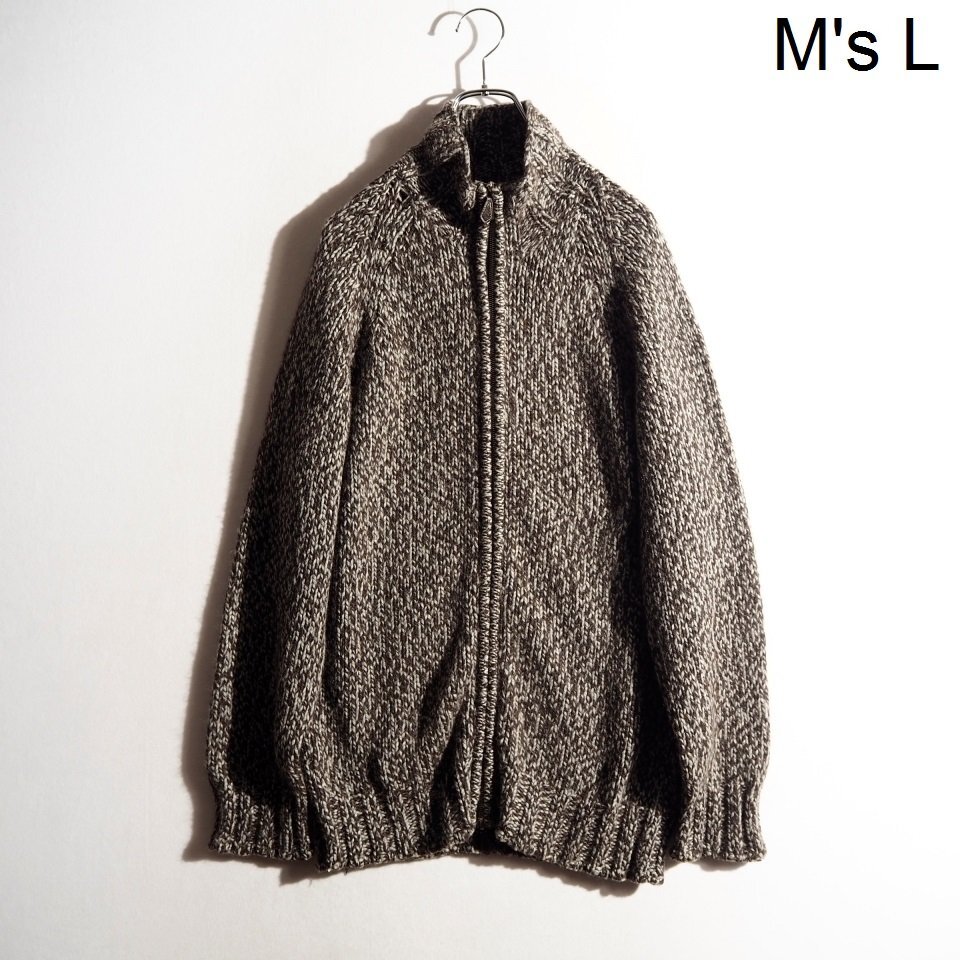 カシミヤ ジップニット ブラウン×グレーミックス L