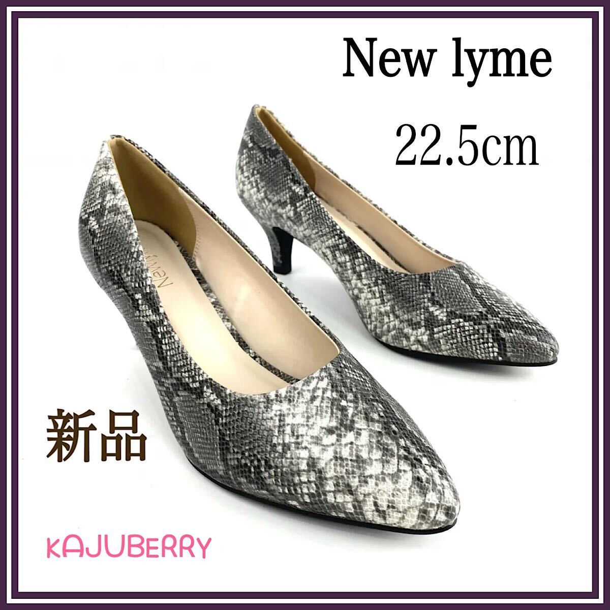 New lymeパンプス 6cmヒール ポインテッドトゥ 22.5 パイソン柄