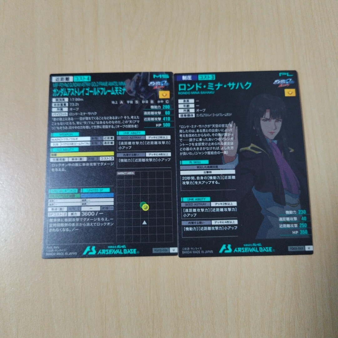 ガンダムアーセナルベース、Uレア、ガンダムアストレイゴールドフレーム天ミナ &ロンド・ミナ・サハクの出品となります。未使用品です。排出後、スリーブに入れて保管していますが初期キズなど気になさる方はご遠慮ください。配送料金は梱包代込みで全国一律、120円とさせていただきます。他の出品との同梱は対応いたします。ノークレム、ノーリターンにてお願いいたします。