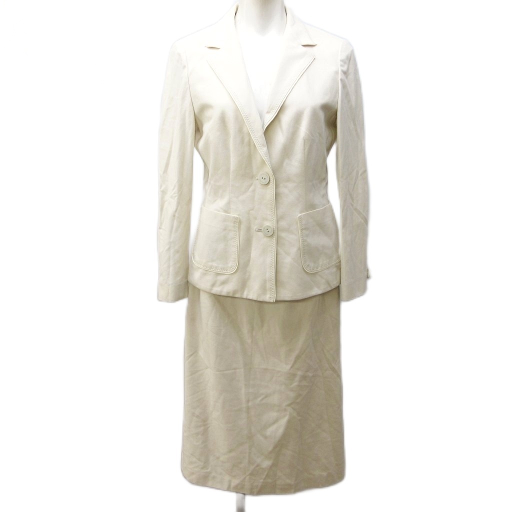 ミラショーン mila schon セットアップ スカートスーツ テーラードジャケット ブレザー 2B ひざ丈 40 約M アイボリー 系 IBO79