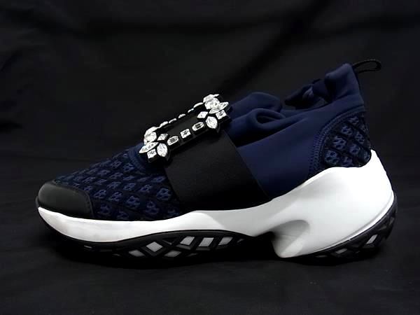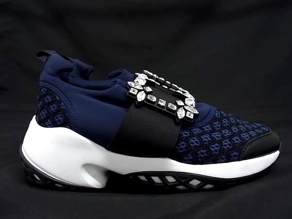 1円 ■美品■ Roger Vivier ロジェ ヴィヴィエ ヴィヴ ラン ス ストラスバックル スニーカー サイズ 37 1/2 (約24cm) 靴 ネイビー系 FN7419