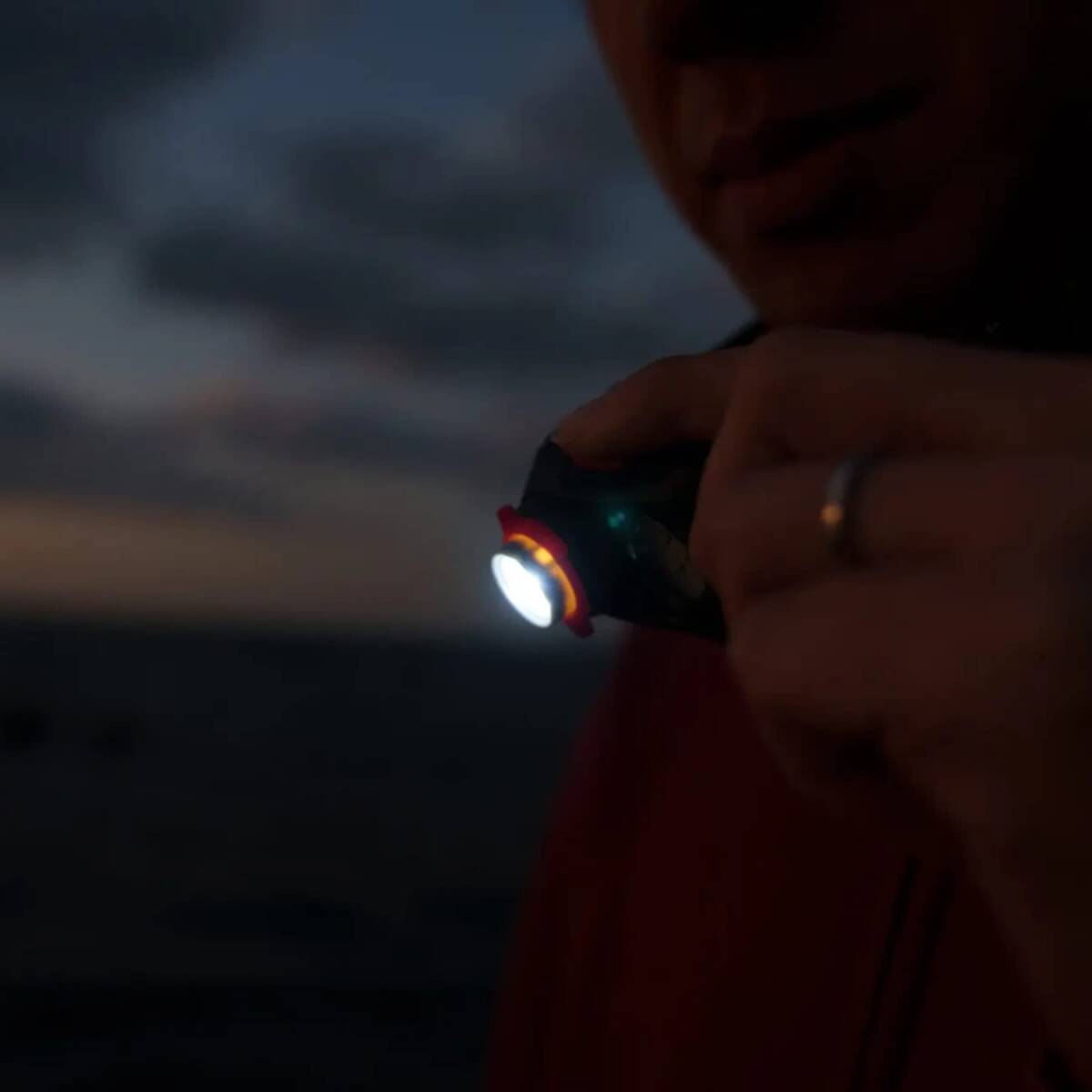 実釣性能とシンプル操作を融合したハイブリッドモデル| スポット光もワイド光も自由自在のフォーカス機能を搭載。ワイド光での移動から瞬時に手元のスポット光に調整が可能となります。また、ゲームベストに装着可能なベルクロベルトやロック機能など、アングラーの声から生まれたアイデアを凝縮しました。明るさにもこだわったサブLEDの赤色ライトはラインを反射し辛く、ノットの結束やトラブル時に抜群の威力を発揮します。また、水中で光を通しにくいカラーの為、警戒心の強いターゲットを狙うのにもってこいの1台です。