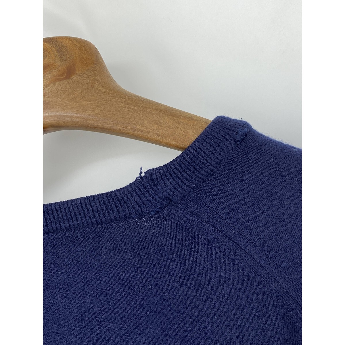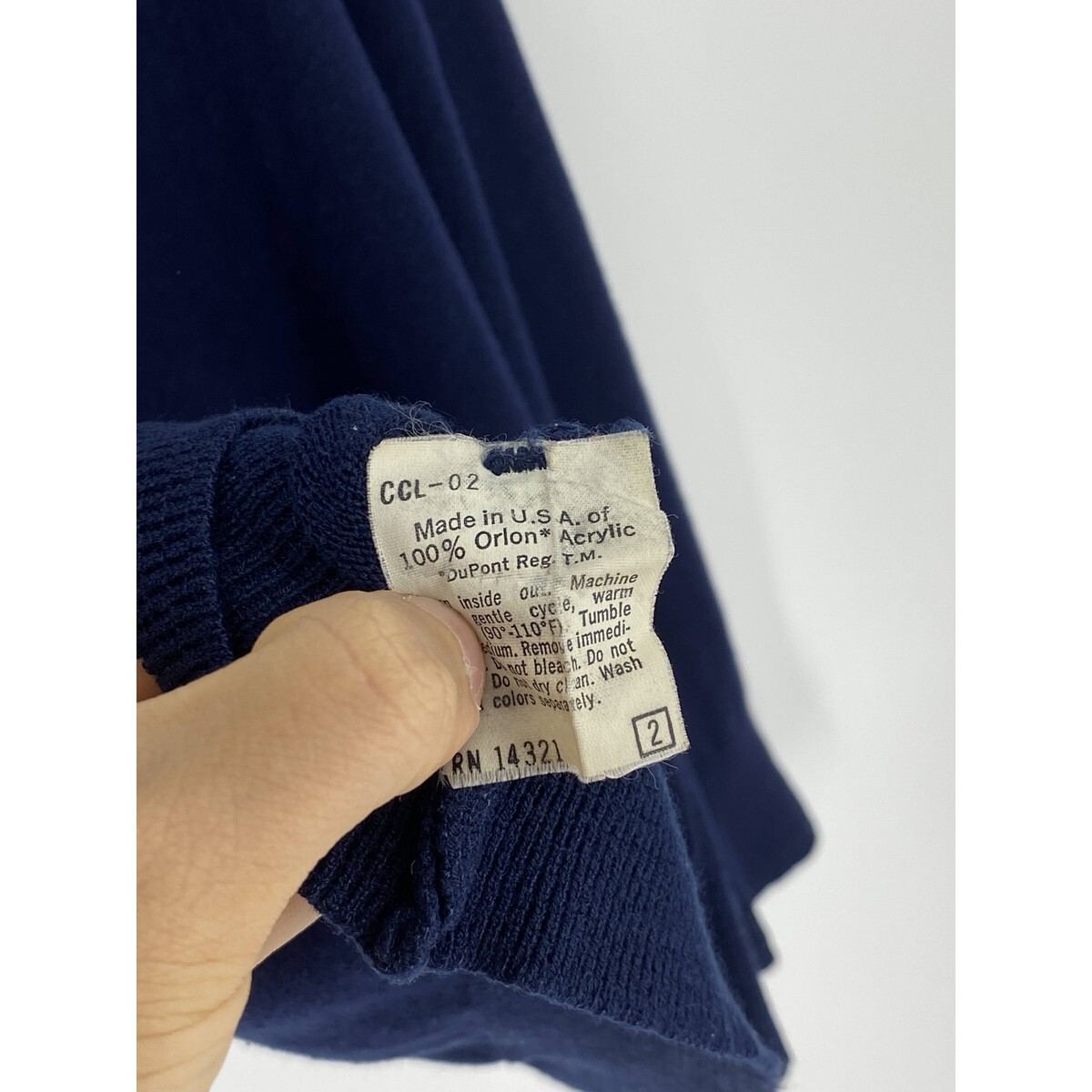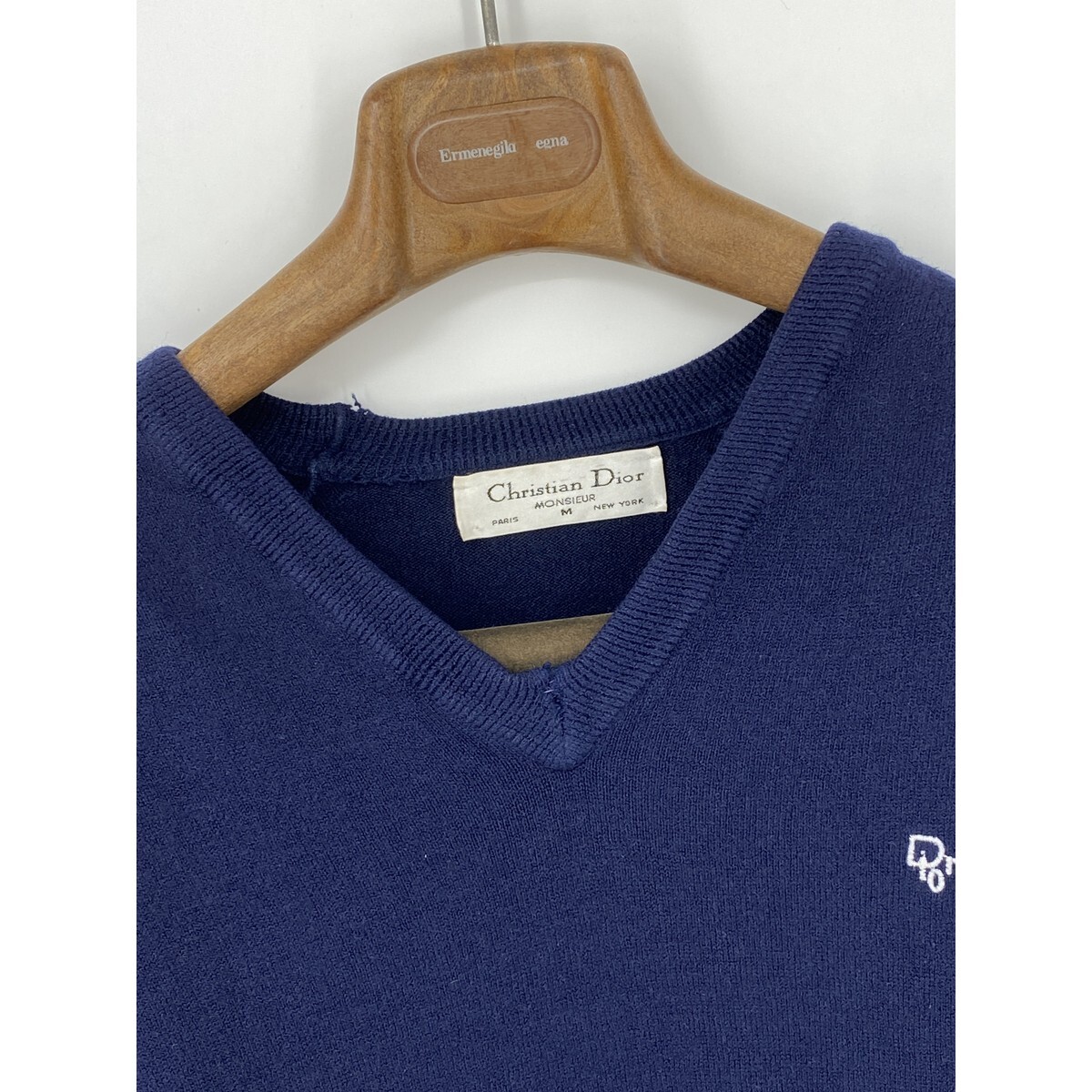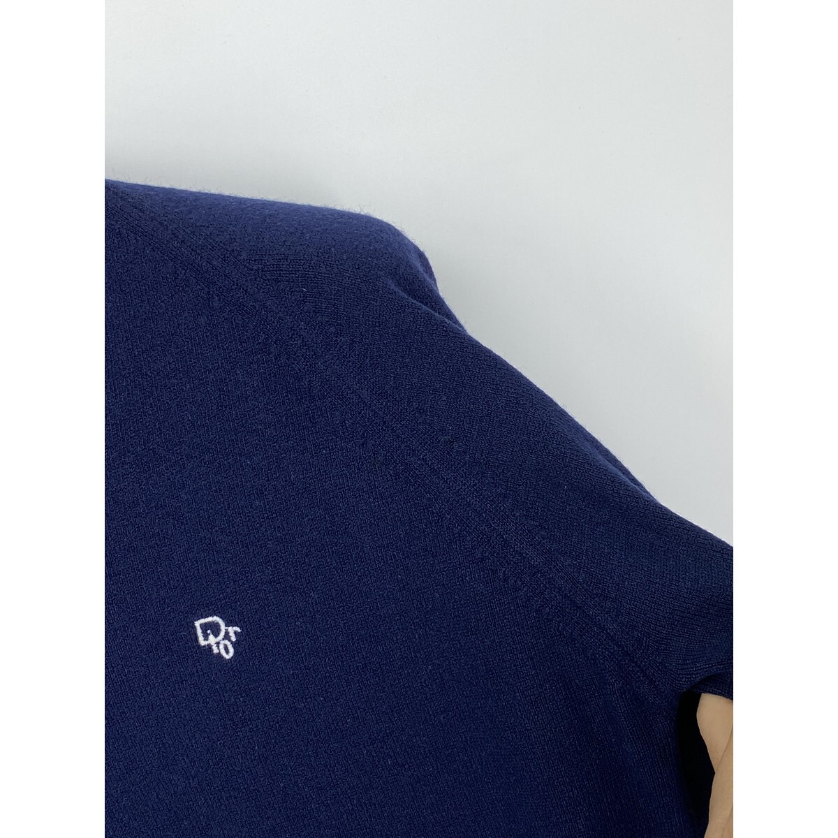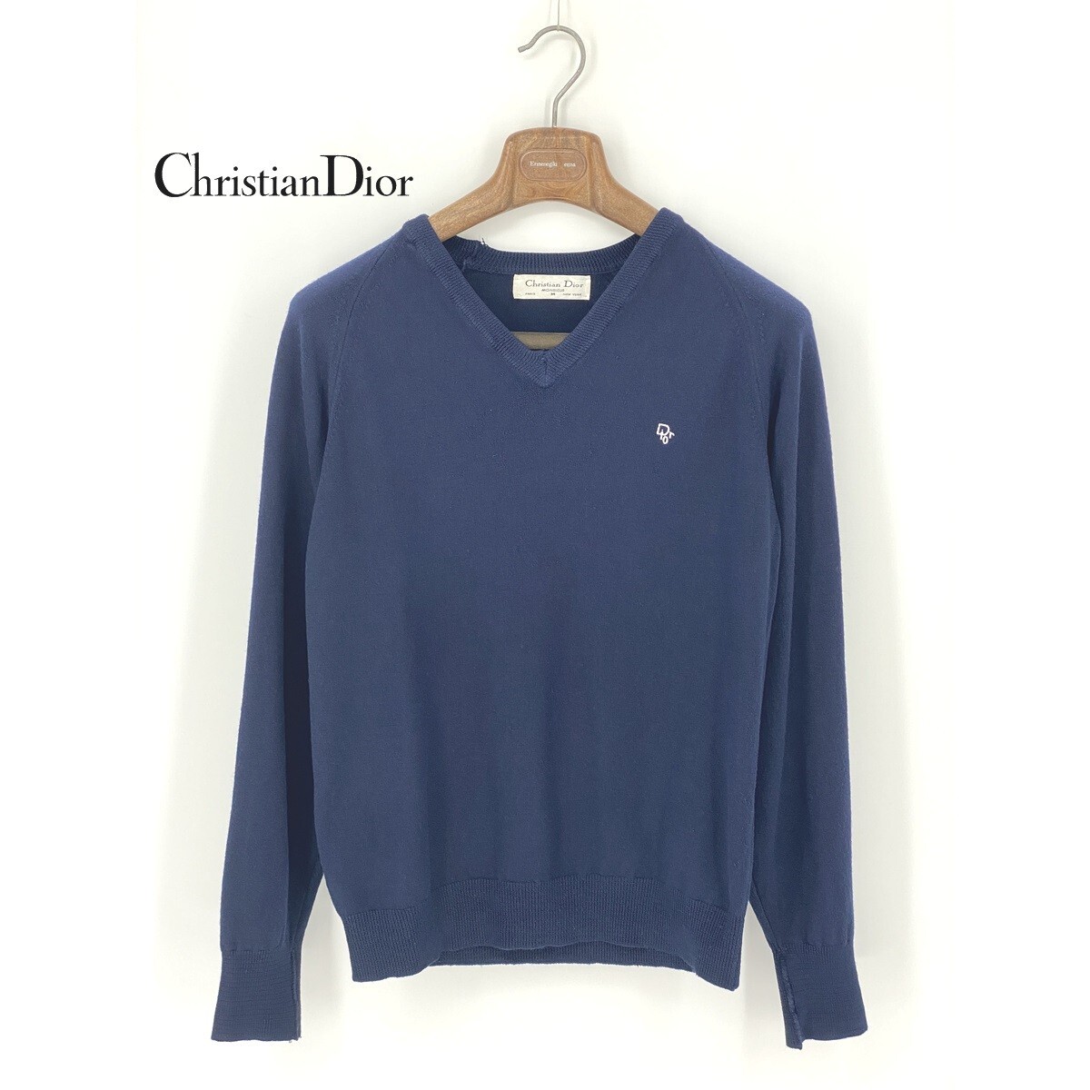 B0335/ビンテージ 80s Christian Dior クリスチャンディオール orlon acrylic 100% 胸ロゴ刺繍 長袖 ニット セーター M 濃紺 USA製 メンズ