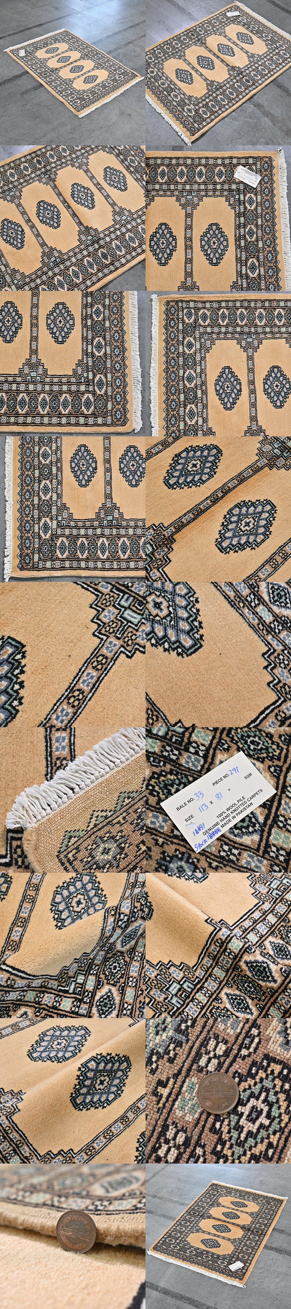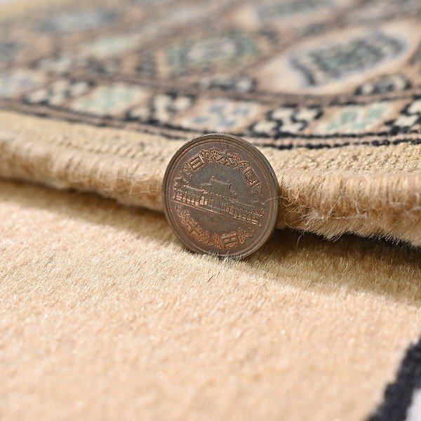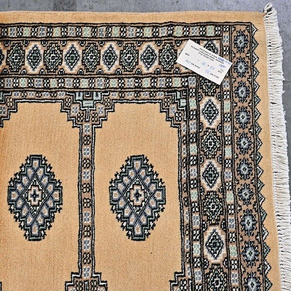 新品 未使用 パキスタン製 手織り ウール絨毯 ラグ ボハラ柄 ギュル文様 ハンドノット 羊毛 カーペット マット ホテル 応接室 P-103