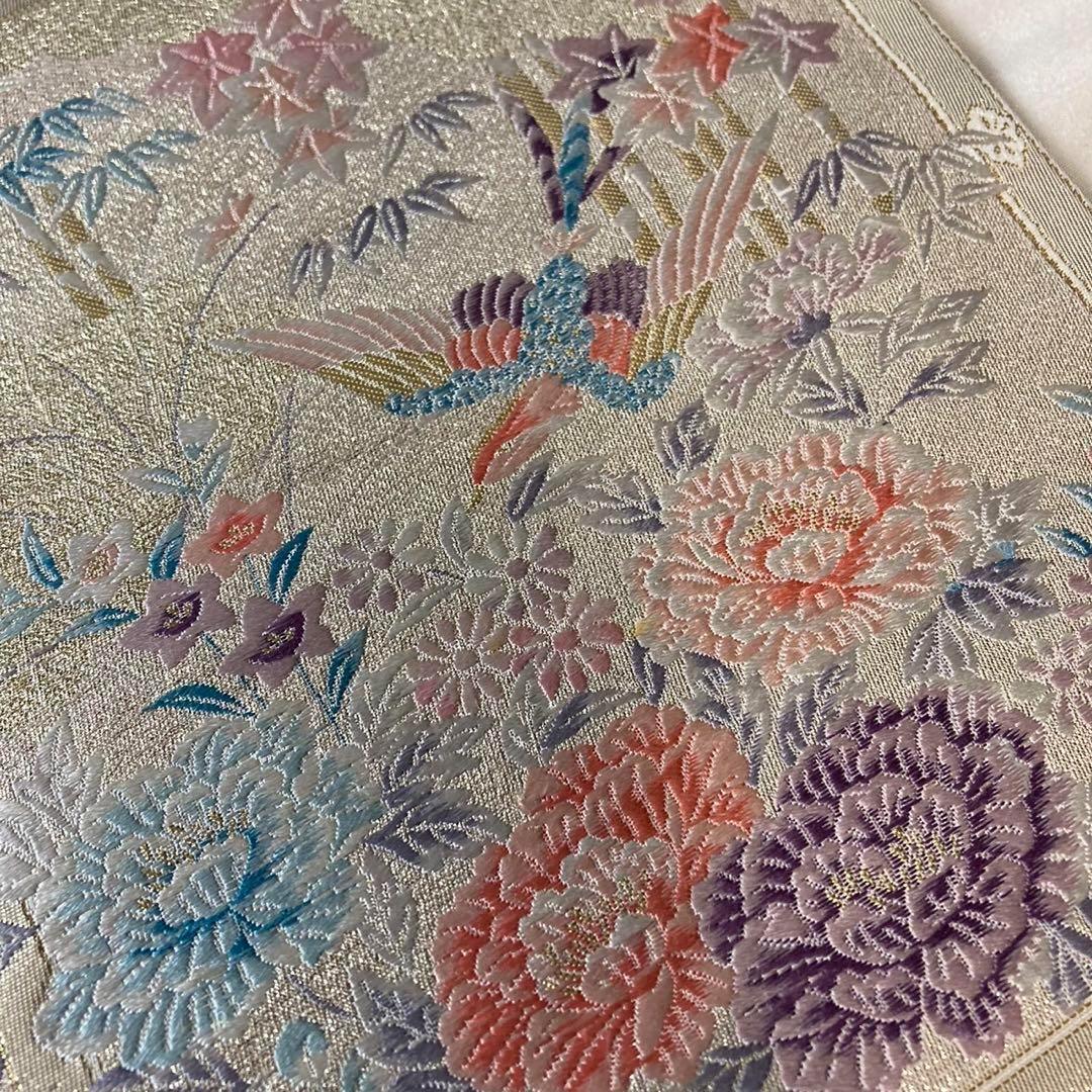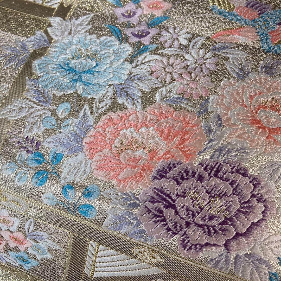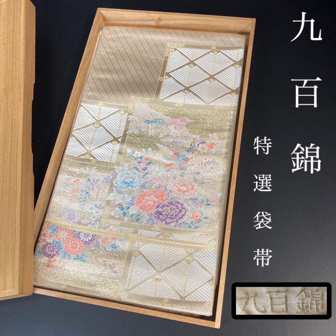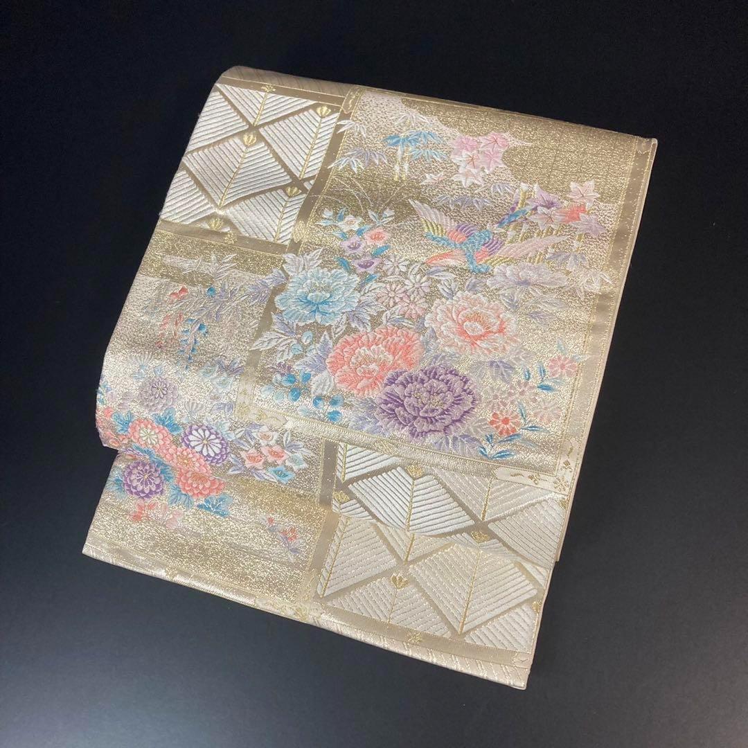 ZF-695 袋帯 九百錦 正絹 六通 高級 鳳凰 牡丹 藤 松菱 芯無