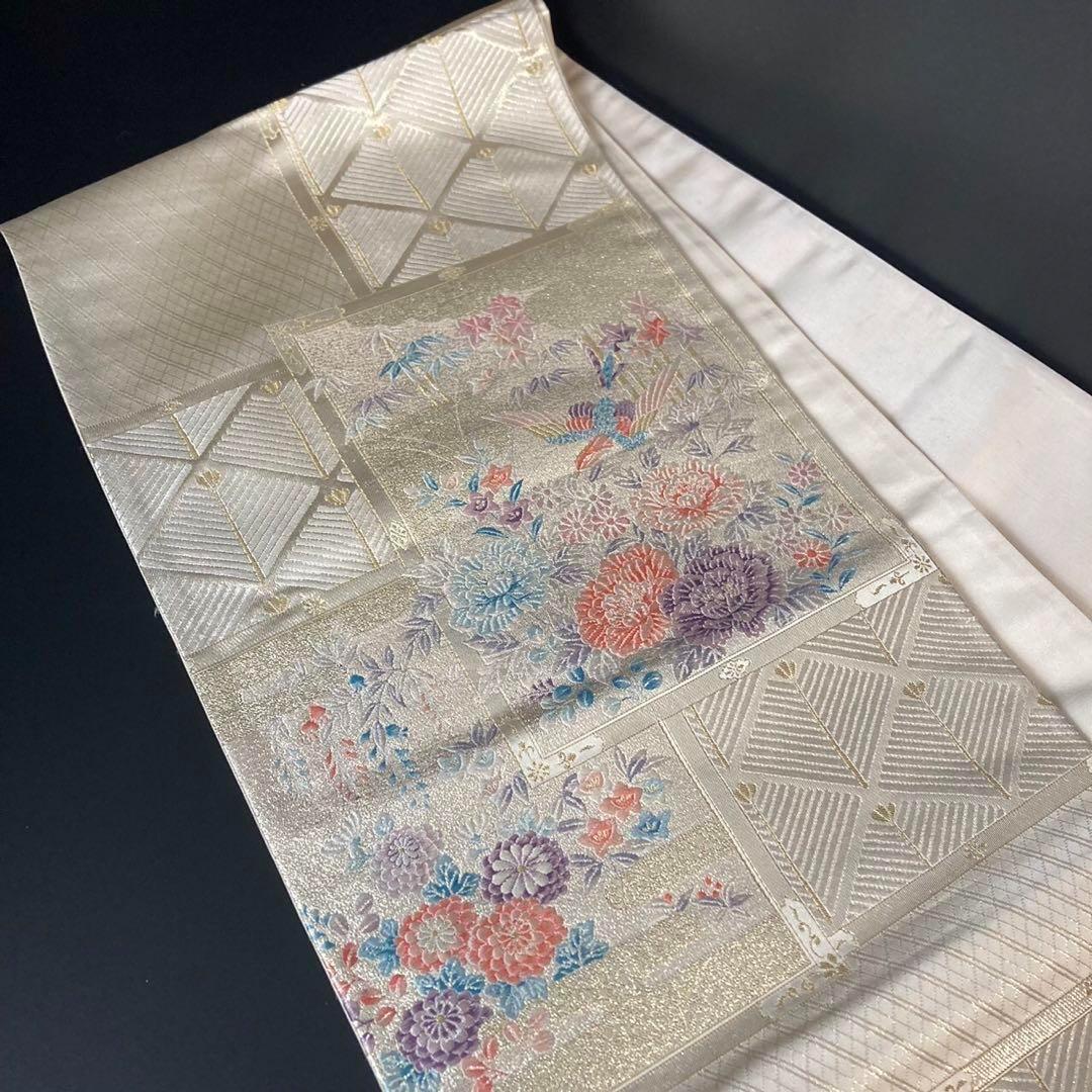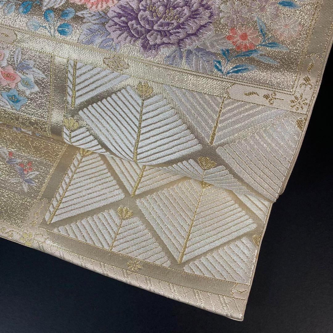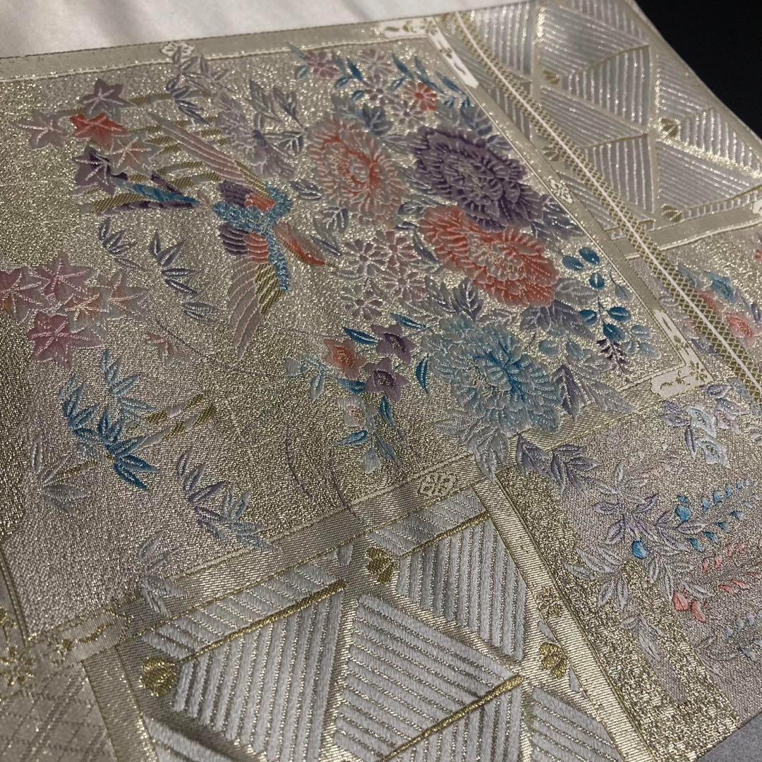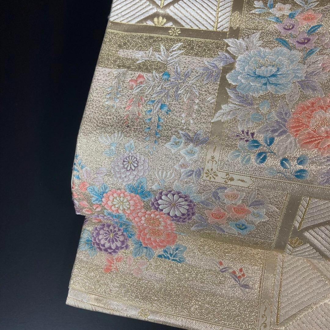 ZF-695 袋帯 九百錦 正絹 六通 高級 鳳凰 牡丹 藤 松菱 芯無