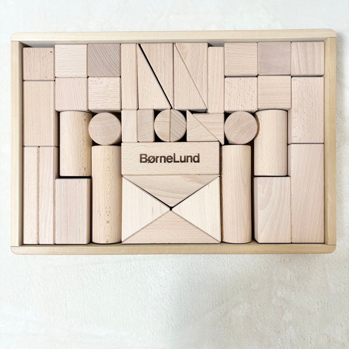 木のぬくもりを感じながら創造力を育む、ボーネルンドのオリジナル積み木・白木Mサイズです。