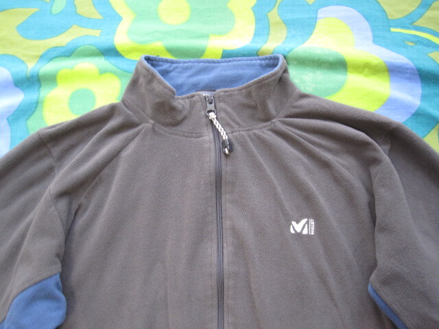 MILLET ミレー 薄手フルZIP フリース メンズM カーキ/ブルー ポリ100 フロント左右にZIP付ポケット USED キャンプ アウトドア 古着