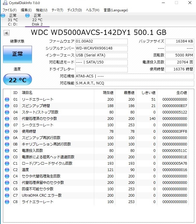 ■DIGA:純正 HDD:修理/交換用(使用16376時間)WESTERN DIGITAL製 品番(WD5000AVCS-142DY1)