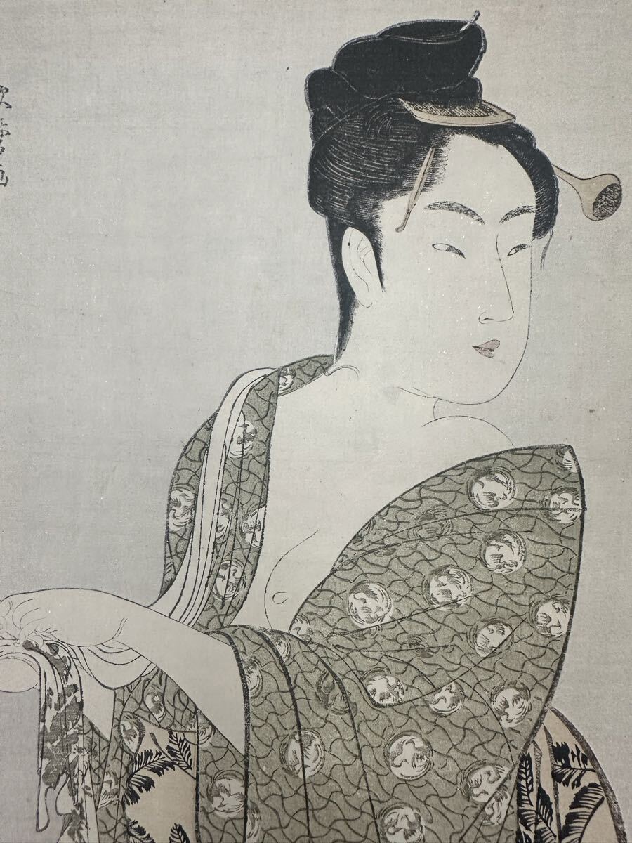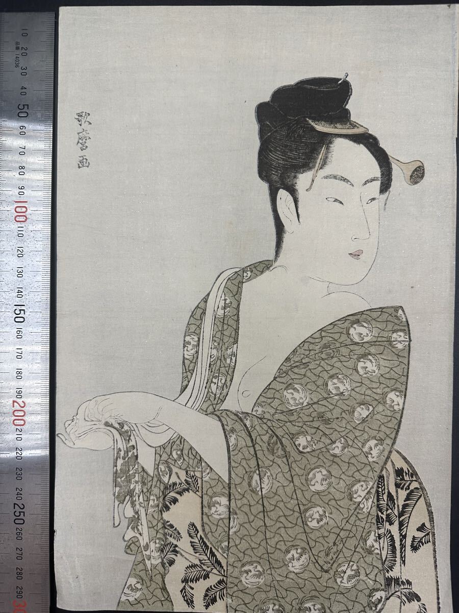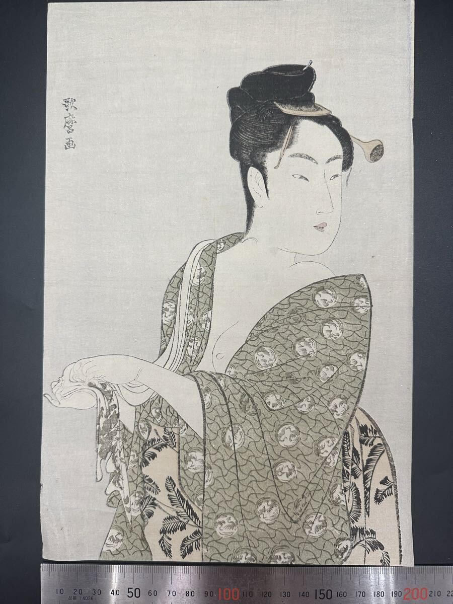 【真作】大正期 浮世絵木版画 喜多川歌麿「婦人相学十躰 浮気之相 相見 」美人画 大判 錦絵 保存良い