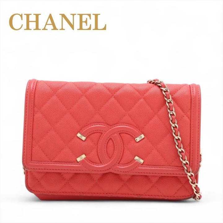 CHANEL シャネル CCフィリグリー キャビアスキン チェーンウォレット レッド ゴールド金具 28896226 28番台