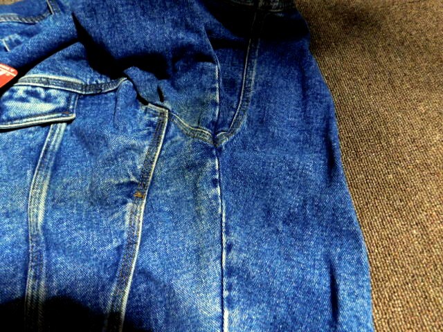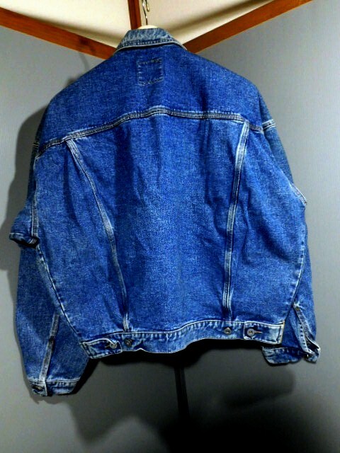 ♪TEDDY SMITH デニムジャケット Mサイズタグ付き】です。・長期保管品になります。いつ頃の物か分かりません。・しわ、折れ、汚れがありますが、現状でのお渡しになりますので、ご了承下さい。・ボタンに、くすみがあります。・タグがホチキスで付いています。・タグには「TEDDY SMITH」「M」とあります。・タグが付いているので、未使用だと思いますが、襟や脇の下、身頃などに汚れのような色が付いています。・ストーンウォッシュ加工のようで、胸ポケットから2㎝ほどの軽石が出てきました。・内ポケットが2つ付いています。外側は、胸ポケット2つ、横にもポケットが2つ付いています。・素人なので、詳しいことは分かりません。写真でご判断下さい。質問を頂いても、答えられないことがあります。・サイズ(全て平置きで測りました)は、襟上~裾までの着丈=65cm、肩幅=64cm、袖の長さ=55cm、脇の下まで=30cm、裾幅47cmです。・採寸も素人なので、サイズは、目安として、お考え下さい。・発送は、クロネコヤマト宅急便 80サイズ、送料着払いです。