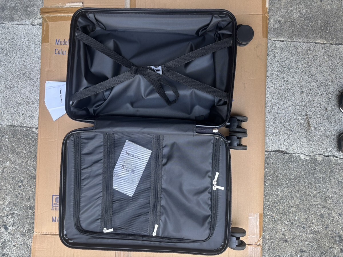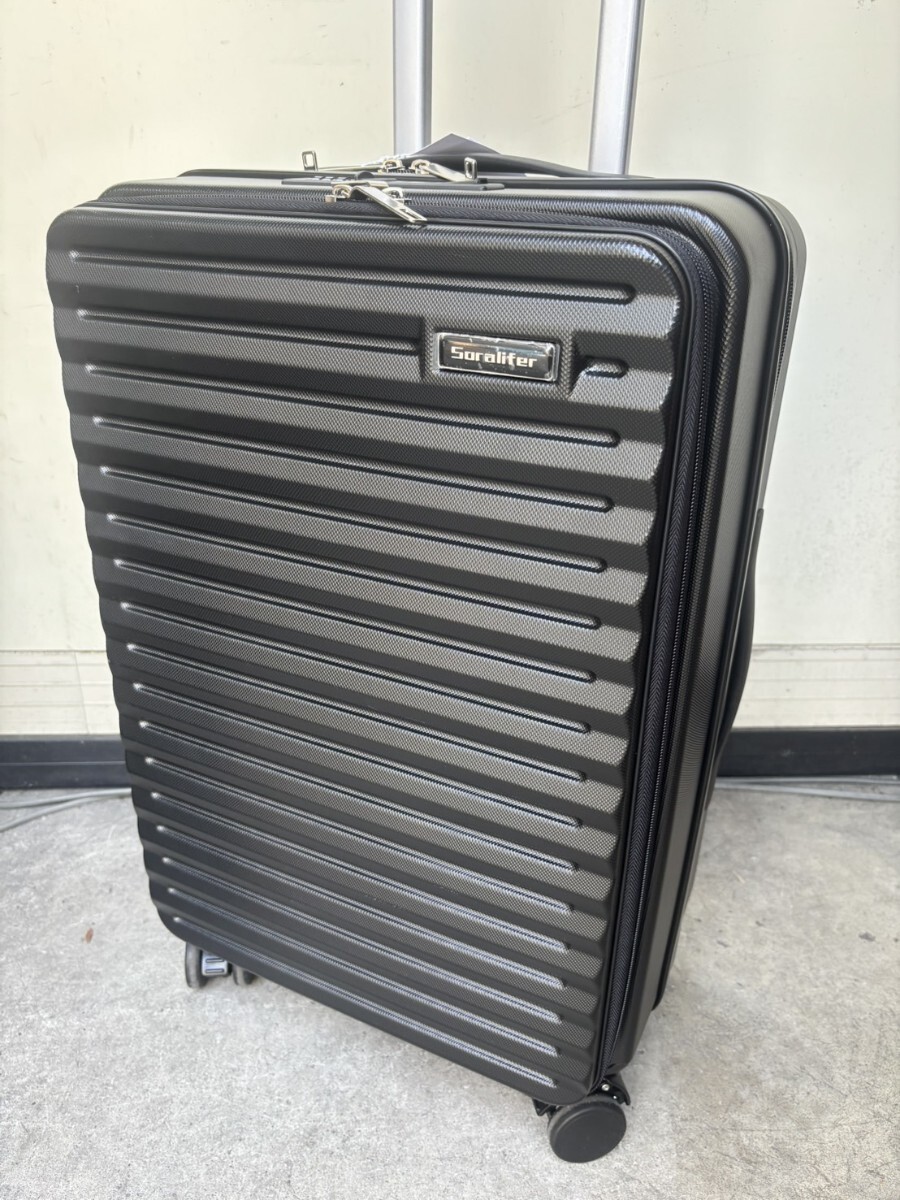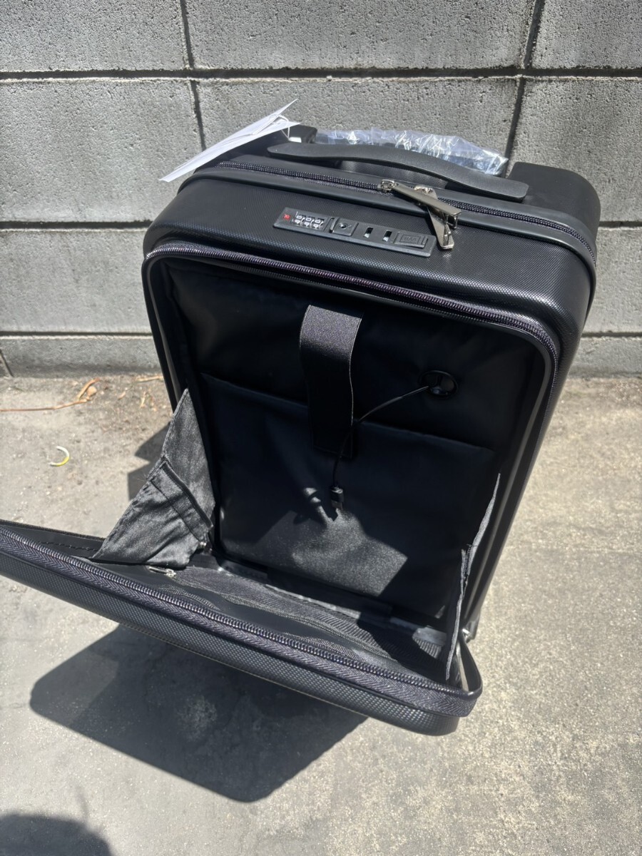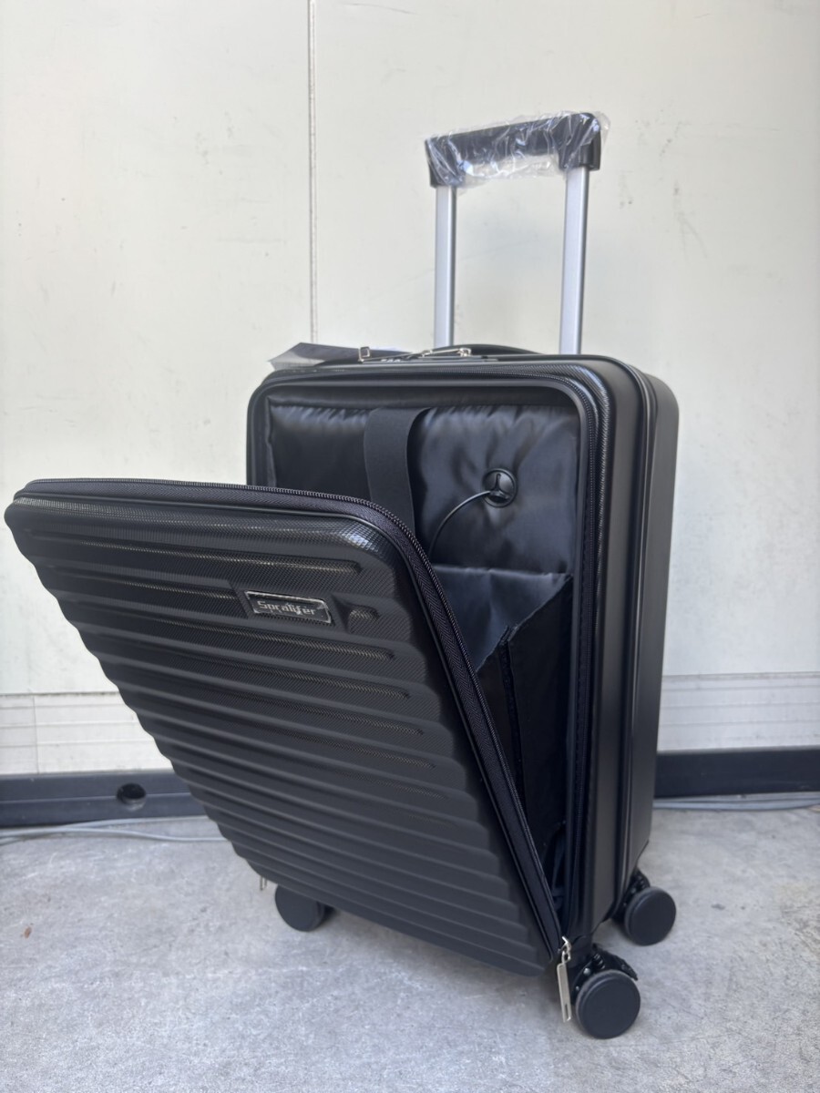 新品未使用TSAロック付フロントオープンスーツケース黒色Мサイズ52L 多機能