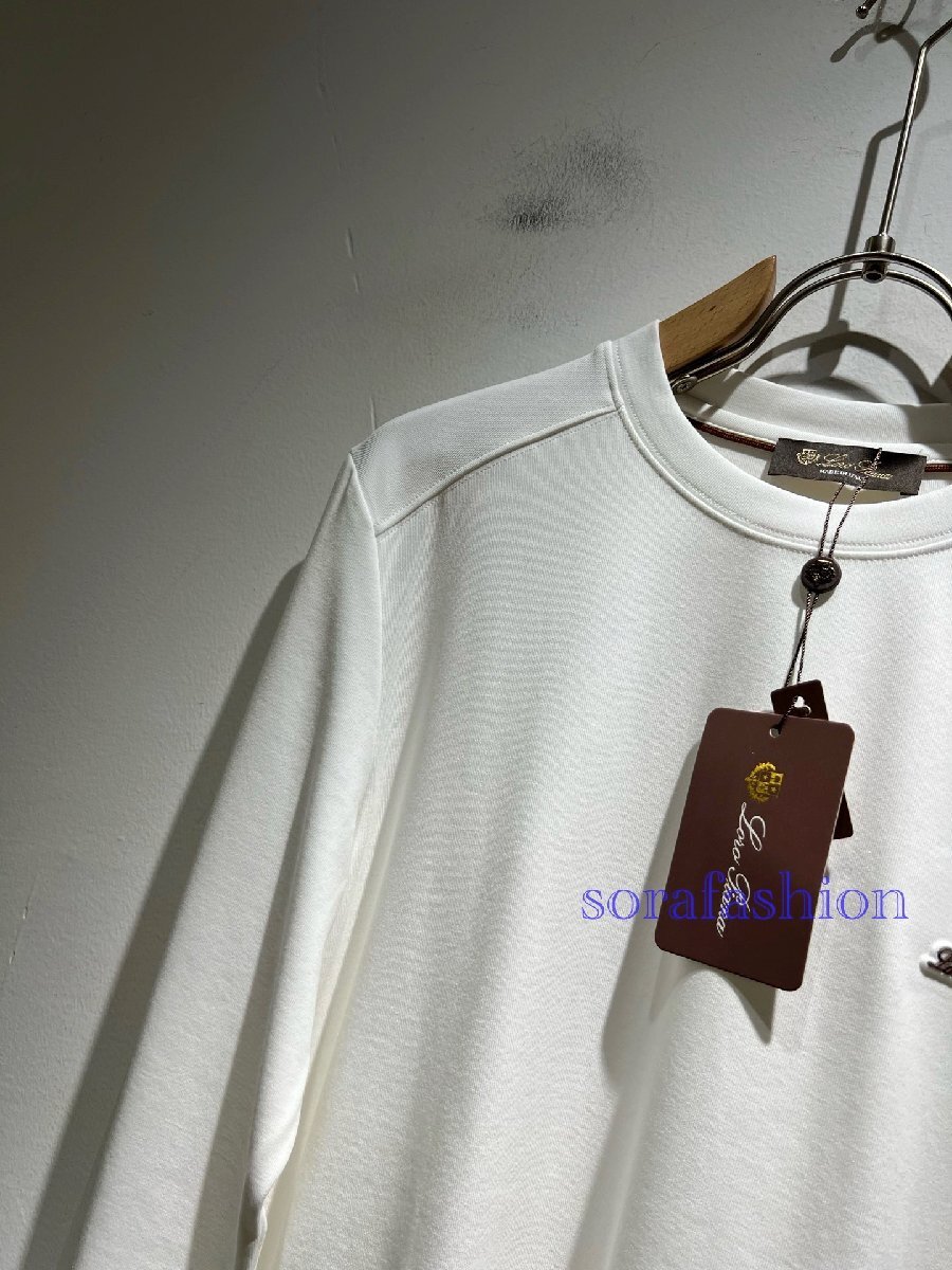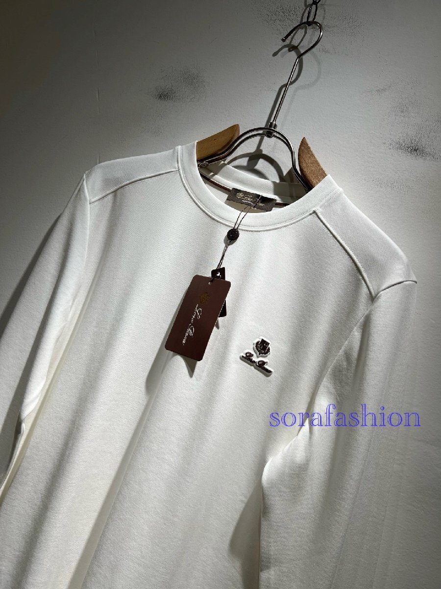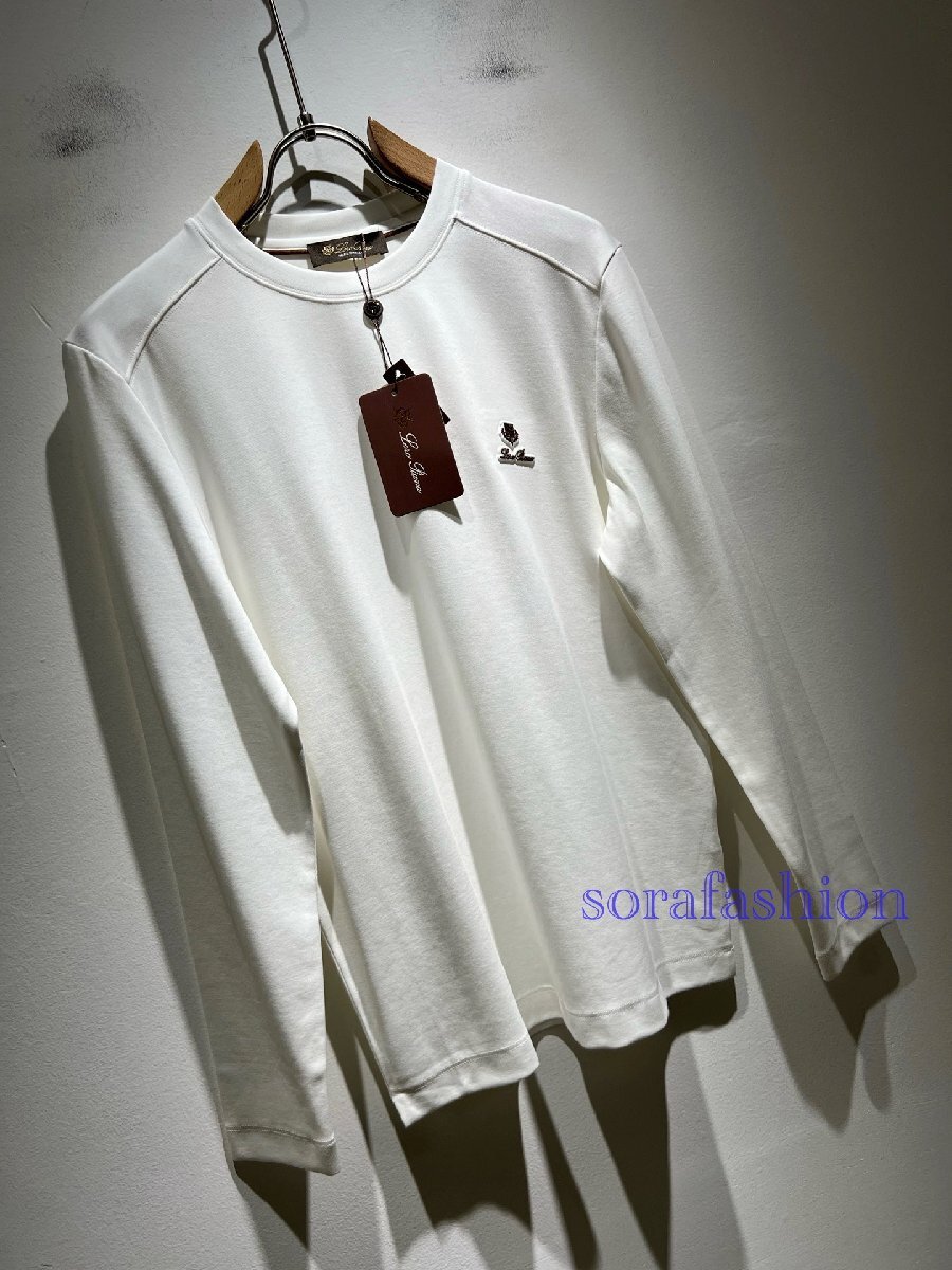 Loro Piana ロロピアーナ メンズ長袖T-シャツ トレーナー クルーネック ホワイト Lサイズ トップス 丸首 シンプル 秋物 綿 紳士服