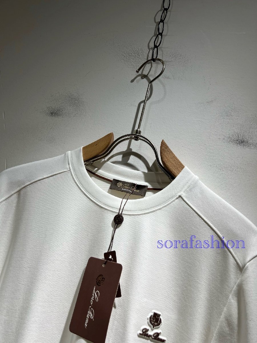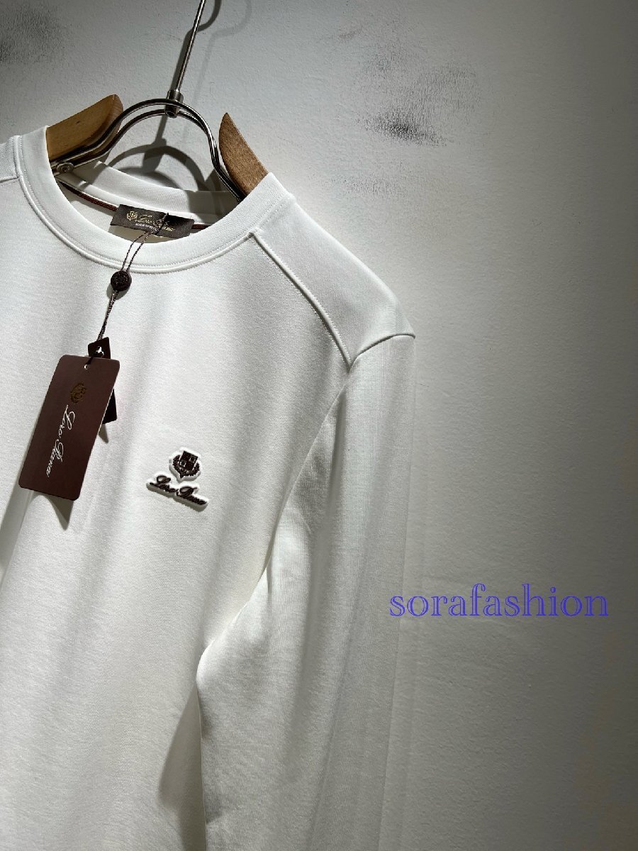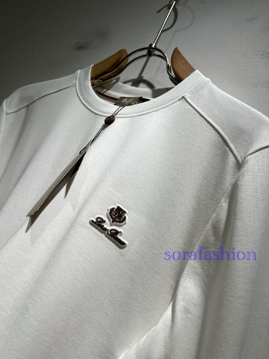 Loro Piana ロロピアーナ メンズ長袖T-シャツ トレーナー クルーネック ホワイト Lサイズ トップス 丸首 シンプル 秋物 綿 紳士服